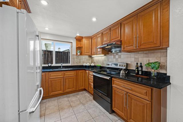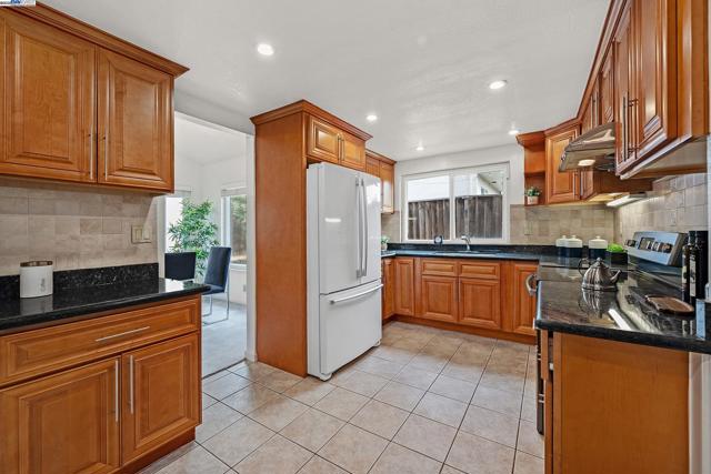 Beautiful 3-Bedroom, 2.5-Bath Home in a Quiet Neighborhood. Step into a welcoming living room with soaring vaulted ceilings that create a bright and open atmosphere. The cozy family room features a charming brick wood-burning fireplace with a convenient gas starter, plus a sliding glass door leading out to the back yard—perfect for relaxing or entertaining. The large, updated kitchen offers an abundance of cabinetry, granite countertops, a smooth-top stove with vent hood, dishwasher, and refrigerator, making it ideal for everyday living and cooking with ease. Upstairs, both bathrooms are enhanced with recessed lighting. Conveniently located near freeways, top schools, shopping, parks, and restaurants, this home combines comfort, style, and accessibility in one perfect package. 3D dollhouse: https://my.matterport.com/show/?m=iZBFbLqE7Rw