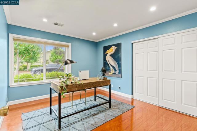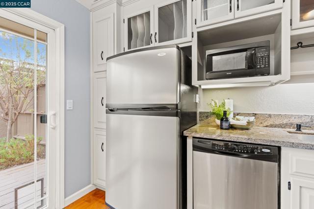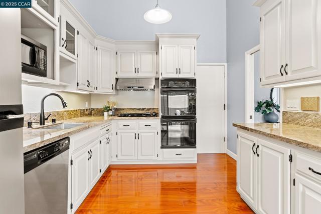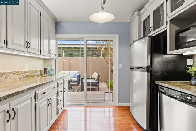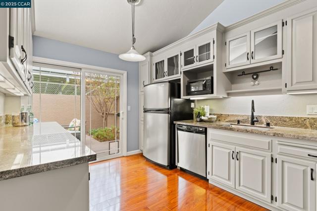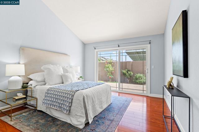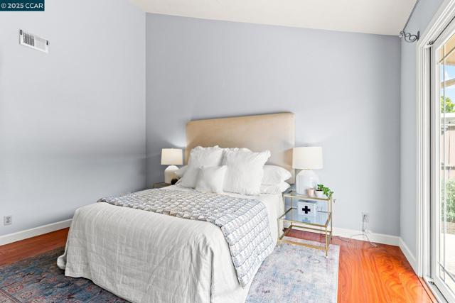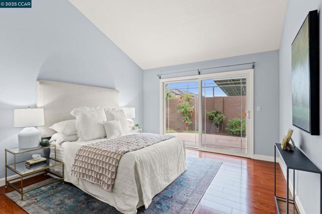 Rarely available, prime San Leandro real estate! Located in the exclusive Floresta Villas gated community, this property offers the ultimate blend of East Bay convenience and tranquil suburban living. As a prized corner lot, the home boasts a perfectly manicured front & back yard, creating exceptional curb appeal. Inside are light-filled and spacious living room/ dining combo, featuring soaring vaulted ceilings, laminate flooring, and a cozy fireplace—a true centerpiece for family gatherings. Just beyond the dining area and updated kitchen, one can access a private patio perfect for year-round California entertaining. This home features spacious bedrooms and a luxurious primary suite, a substantial walk-in closet, direct sliding door access to the backyard, and an en suite bathroom. The updated primary bath showcases a modern walk-in shower, dual sink vanity and ample storage space. This community provides the luxury of a secure community gate, a sparkling pool, and a relaxing spa. Location-wise, this home places you within minutes from top area landmarks including the waterfront beauty of the San Leandro Marina Park and unparalleled Bay Area access, being minutes from HWY 92 (San Mateo Bridge), HWY 880 and the Oakland International Airport.