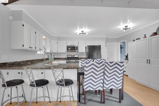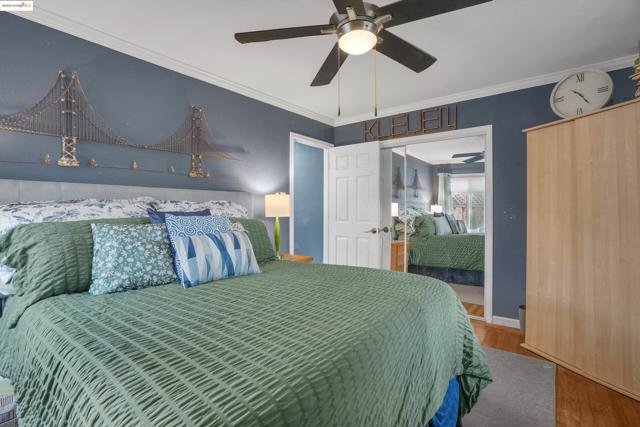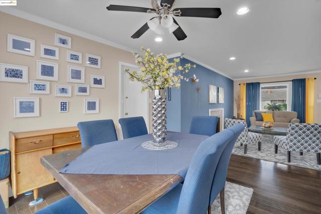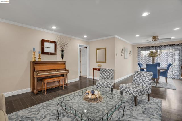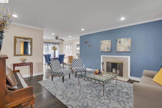 PRICE REDUCTION! Nestled inside a quiet cul-de-sac inside the highly sought after San Lorenzo Village with minimal turnover, this beautifully maintained 3-bedroom, 2-bath home with a 2-car garage offers 1,525 sq. ft. of comfortable living space on a 5,940 sq. ft. lot. The spacious family room features vaulted ceilings with custom wood beams, a brick-surround fireplace, and abundant natural light, creating a warm and inviting atmosphere. The kitchen overlooking the family room —perfect for gatherings and entertaining. Enjoy formal living and dining rooms, hardwood and laminate wood flooring, designer paint colors, two fireplaces, crown molding, recessed lighting, and ceiling fans throughout. Additional highlights include interior laundry and a charming covered front porch that enhances the home’s curb appeal. Move-in ready and filled with character, this home offers the perfect blend of comfort, style, and timeless appeal in a well-established, desirable neighborhood with close proximity for commuting, schools, dining, shopping and MORE!