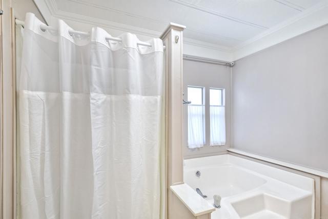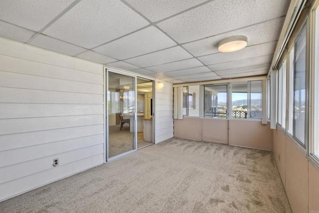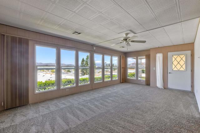 Nestled high on the hill this fantastic home has great views of the mountains in the distance. Light and bright inside, the layout is spacious with a bonus attached room with lots of windows, offering a nice breeze and great location in the park. New carpet and a roof that is 3 years young. La Moree Estates is a 55 plus community where residents own the land. The HOA fee includes a community pool, clubhouse, RV parking (if available), water, trash, sewer and cable. Conveniently located to shopping, 78 freeway, Palomar and Kaiser hospitals.