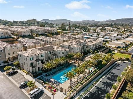 WOW, WOW & WOW!!! Check out this phenomenal, San Marcos like new condo (2 yrs new) at an INCREDIBLE PRICE!!! Elevated on a hill with views, this end unit is ideally situated near front gate with guest parking by front door, mailboxes & pool/spa just across drive. Bright & airy with tall ceilings throughout & plenty of indirect lighting overhead. Spacious great room on 2nd floor opens to inviting kitchen island/breakfast counter featuring stainless steel appliances (refrigerator included), ample cabinetry storage & counter space. Enjoy views from your private balcony just off your living area. Also on main living area is a half bath with pedestal sink. Enjoy doing laundry with included stacked washer & dryer down hall from both bedrooms. Primary bedroom with views & ceiling fan is ample sized to hold a king size bed. Attached bathroom features dual sinks, lots of counterspace, compartmentalized commode, oversized shower & walk in closet. 2nd bedroom also with views & attached bathroom. Oversized 2 car garage with tall ceilings & direct entry into home, features EV hookup for charging, tankless water heater & FULLY PAID OFF SOLAR (perfect for keeping those electric bills lower)! Move in ready & just waiting for its new owner!