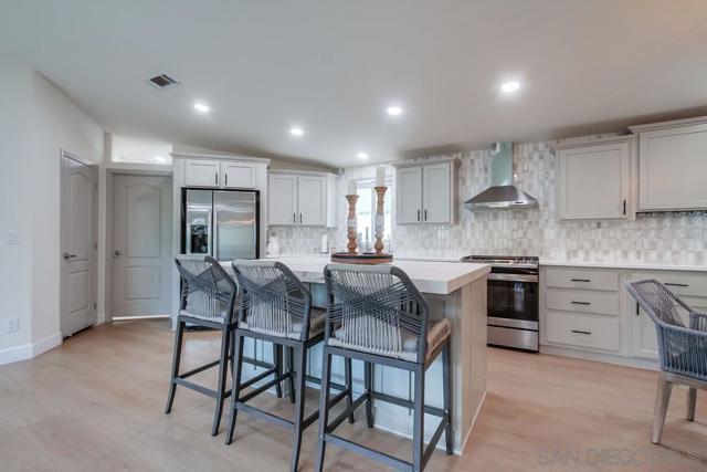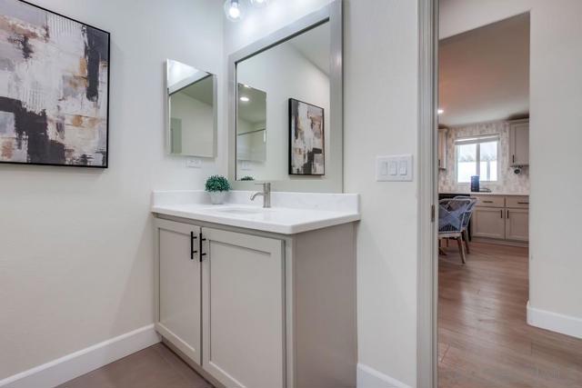 This is the one you have been waiting for in Madrid Manor where you OWN the LAND! 1 year old house with 3 bedrooms, 2 bath, open concept living, custom flooring thru out including Luxury Vinyl Plank, tiled bathrooms and indoor laundry room. (no carpet) kitchen with marble backsplash, Touch faucet, reverse osmosis system, lots of storage with cabinets upgraded with pull outs, walk in pantry, upgraded stainless steel appliances and new wine fridge. Wine and coffee area, center island with custom porcelain countertop, hard surface countertops thru out. Fireplace with custom surround and plug for tv above, spacious master suite with walk in closet with closet organizers and cabinetry, tiled shower, double vanities and custom make up area. Upgraded lighting in baths, dining and exterior. Front spare bedrooms with hall office area and French doors into spare. Custom ceiling fans in each room and many additional ceiling lights thru out home. Exterior painted in light grey and white, large private outdoor space with stamped concrete that looks like pavers, vinyl fenced large yard, new shed. Ring camera, Low maintenance landscape on automated drip system and to top it off a great Avacado tree! Home is 15 months New! Home located in the esteemed 55+ Madrid Manor community in San Marcos. YOU OWN THE LAND!! Madrid Manor has many amenities, including a pool, spa, clubhouse, tennis/pickleball courts, billiard room, card/game room, and library, in addition to numerous social events. The manufactured home has a 433 A permanent foundation.