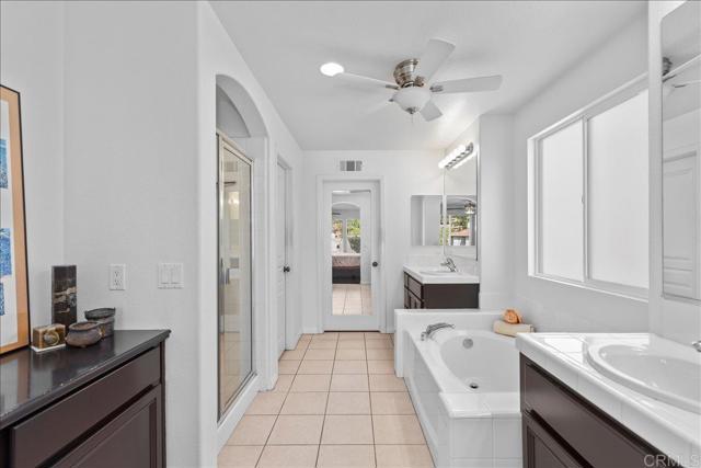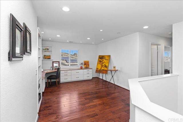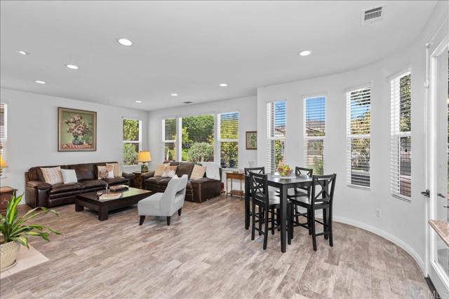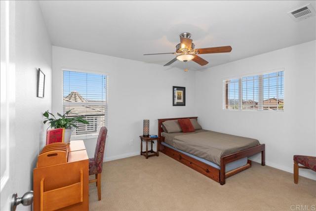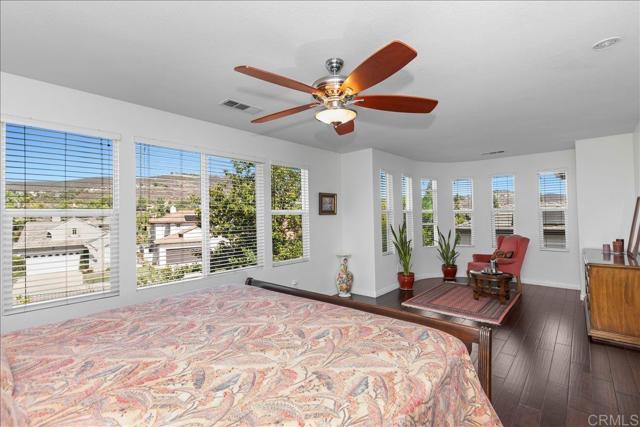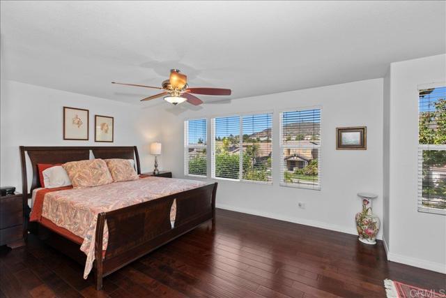 Fantastic location, floor plan & much more! Beautiful home with private backyard and mountain views in Cedar Crossing of San Elijo Hills, located within walking distance to the town center. This popular floor plan features 4 bedrooms plus spacious loft and 3 full baths (including first floor bedroom and bath), formal living and dining room spaces, and upgraded kitchen that opens to family room with cozy fireplace. The gourmet kitchen includes stainless steel appliances, granite counters and windows to the backyard. Upstairs, walk through the French doors into the natural light filled spacious master suite, large walk-in closet, and ensuite bathroom with deep soaking tub and separate shower. The large loft with built-ins (optional 5th bedroom), is a great flex space for an office, playroom, exercise room or easy conversion for a 5th bedroom. Enjoy the private yard featuring lawn, spacious patio, outdoor bbq island and multiple fruit trees including apple, fig, citrus, apricot, plum and more. Additional features include 2 car garage, tankless water heater, porcelain tile and wood flooring, updated ceiling fans, AC & more. Mountain views from the backyard & no direct neighbor behind adds to the charm of this home. Walking distance to San Elijo Hills town center--with multiple restaurants and business--, desirable schools (SEH Middle & Elementary), ballparks, soccer field, picnic tables, bbq, playgrounds, dog park and community center. Enjoy the shops & eateries along with 18 miles of trails & 19 acre park + 1000 acres of open space. Zoned for desirable San Marcos High. Seller to select services. Room dimensions & sq footage are approximate, per builder & assessor's record. Mello-roos is estimated. All MLS & marketing info is approximate & not guaranteed. Buyer to verify all info & sizes to satisfy themselves with the property.