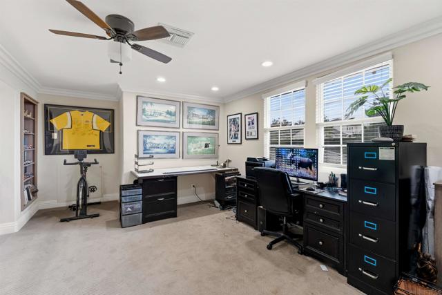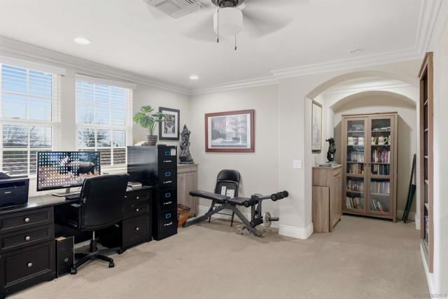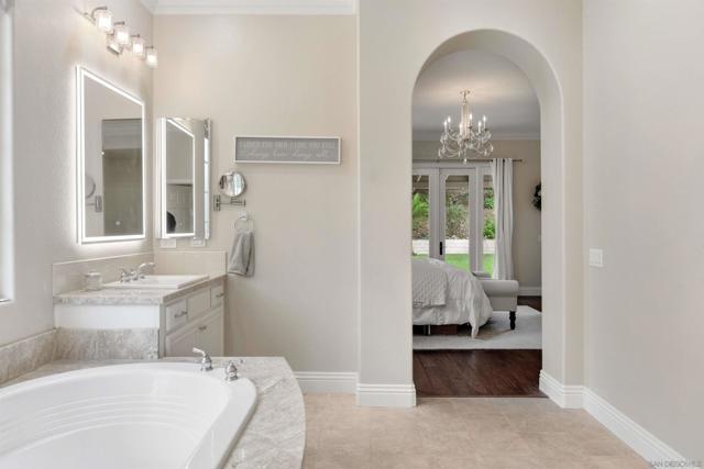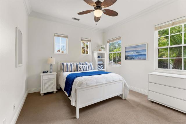Welcome to 1455 Lighthouse Way - an exceptionally rare, masterfully designed single-level residence that redefines sophisticated living. This stunning home sits behind the gates of West Cliffe, one of North County's most coveted gated communities, offering unparalleled privacy and prestige. Completely Upgraded by the current owners with meticulous attention to every detail, this architectural gem showcases fresh paint, premium new flooring throughout, and high-end finishes in every room. The thoughtfully designed layout flows effortlessly across one beautiful level, eliminating stairs while maximizing accessibility and timeless elegance. Four generously sized bedrooms, 3.5 luxurious bathrooms, plus a versatile loft with ocean views on clear days offer exceptional flexibility for any lifestyle. A rare first-floor guest suite with full bathroom and direct backyard access adds tremendous value for entertaining or multi-generational living. The primary suite is a sanctuary, featuring a private porch, spa-inspired upgraded bathroom with premium fixtures, and an expertly built-out walk-in closet with custom organization. The chef's kitchen is a showstopper with an expansive island, gleaming quartz countertops, full backsplash, integrated refrigerator, and top-tier appliances that flow seamlessly into inviting living spaces filled with natural light and oversized glass doors opening to the outdoors. The backyard is an entertainer's oasis with endless possibilities—sprawling manicured lawn perfect for gatherings, recreation, and unforgettable family moments!