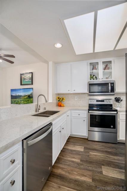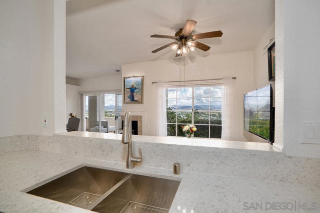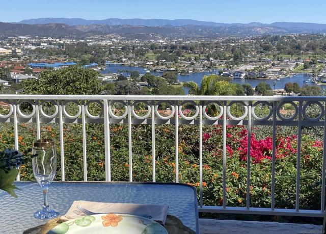 The BEST view in Lake San Marcos! Pictures do this property no justice. Make every day feel like a vacation. Located at the peak of the community sits this gorgeous condo with sit down, panoramic views of Lake San Marcos and out to the mountains. Clean as a whistle and tastefully upgraded, this open-concept condo features an oversized patio with spectacular views to enjoy year-round, detached two-car garage, and resort style amenities. Prime location at the top of the hill provides a perfect ocean breeze. Adjacent to guest parking with views of the Pacific. Come see why Lake San Marcos is north county’s best kept secret. Just a short stroll to the lake, restaurants, golf, boating, tennis, pickleball, and much more. Please see supplement. Enter through the front door and you’ll immediately see how special the views are from this home. Foyer leads to your living room with cozy fireplace and an attached dining area that leads out to a spacious patio. Open to the living room is an updated kitchen that features quartz countertops, stainless steel appliances, plenty of cabinet space and a casual dining area. Down the hallway is a laundry closet with full size washer & dryer. Off the rear of this wing is your primary bedroom suite with more views of the lake and slider that leads out to the private patio. Primary bath features dual sink vanity, glass-enclosed shower and a large soaking tub. Secondary bedroom and hall bath with shower-tub combo is also located down the hall at the front of the condo. Enjoy resort style living for all ages at Lake San Marcos. Panorama has it’s own private community pool & spa, but residents also have access to the Lake San Marcos community center, which features two pools as well as tennis & pickleball courts. Also by the lake you’ll find The Lakehouse Resort, restaurants, two golf courses, boat & kayak rentals and community events year-round. Come see for yourself what makes this such a special place to call home.
