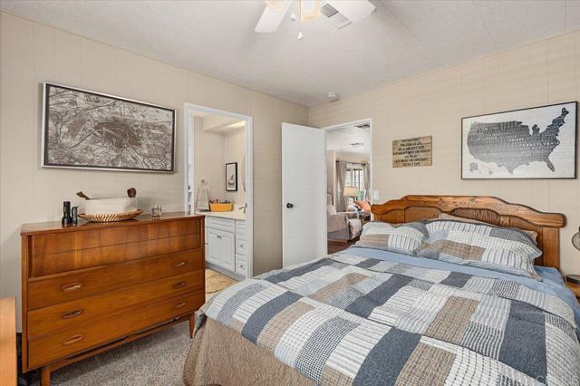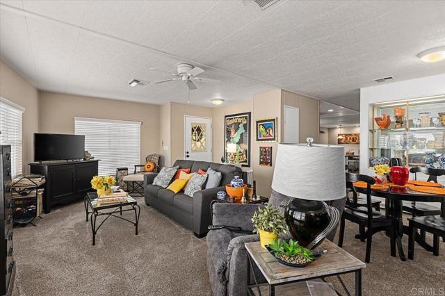 Lovely, updated 3 section home located in Palomar Estates West; a 55+ resort style community w/ rent control. This home is also a Post HUD & on registration (NO property taxes); making it a golden unicorn! Beautiful remodeled Kitchen w/ large island, pantry, new garbage disposal, self-cleaning oven, under counter lazy Susan, roll out spice rack, roll out double trash, & recessed lighting. Newer roof, newer A/C & furnace, dual pane windows, newer exterior paint & floors, updated Bathrooms, & more! Built in dining nook conveys. Oversized laundry room with utility sink, desk, & extra storage space. The Main Bedroom has an office / retreat which makes a great reading room, hobby room, exercise room, you name it! The Main bedroom also has a large walk in closet & double sinks in the attached Bathroom! Custom blinds & 3 ceiling fans. Outside offers a wheelchair ramp for easy access, a brick open air patio, a covered porch, a raised garden bed, 3 fruit trees, and a storage shed. This FIVE STAR park welcomes 2 small pets per household (must be approved by management) and rent control. The monthly space rent is only $720.57 per month. Age 55+, 2nd resident can be 35+.