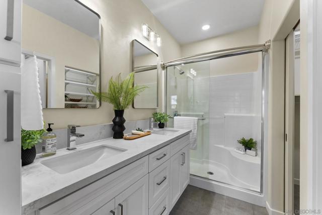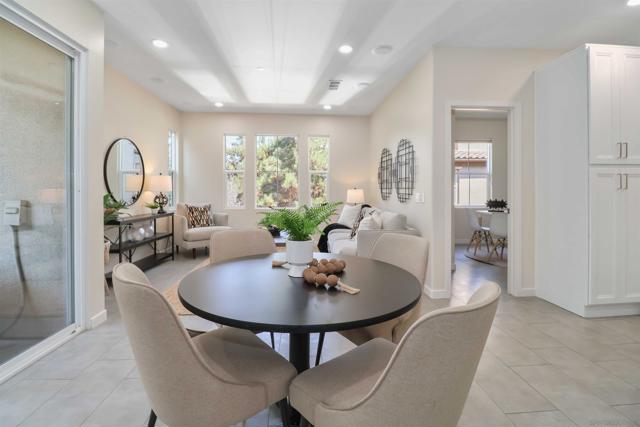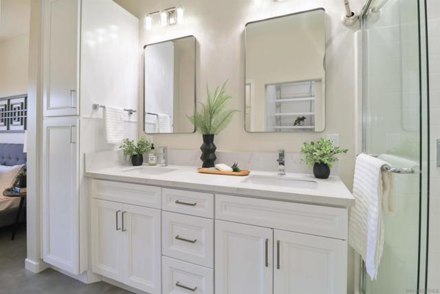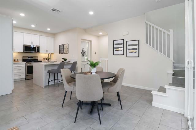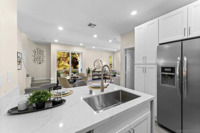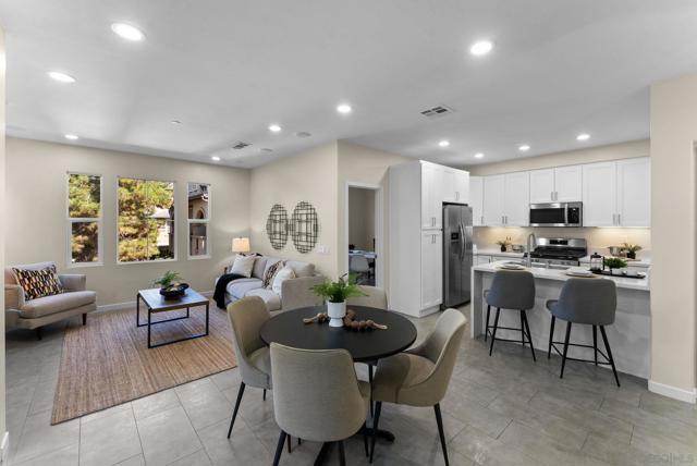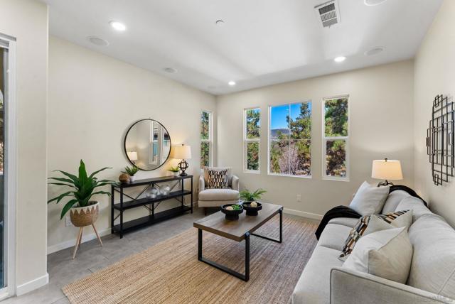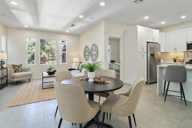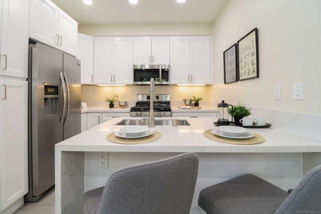 Pack your bags! Opportunity is knocking right now! Don't miss your chance to own this light, bright, & airy turnkey 3BR/3BA corner-unit townhome in Solaire! You'll love the 9' ceilings, walls of windows, smart upgrades & prime location between San Elijo Hills & La Costa/Carlsbad. Relish your tranquil hillside & treetop views and care-free lifestyle thanks to the updated kitchen & bath cabinets, quartz counters, low-maintenance modern tile flooring, & sleek LED lighting & fixture upgrades throughout. The kitchen features a stylish quartz waterfall edge, breakfast bar, & open layout to the living/dining areas. Newly installed SS microwave, dishwasher, & 5-burner smart range w/ Wi-Fi & voice control, packed w/ features sure to bring out your inner chef. The freshly painted interior, energy-efficient lighting, in-unit laundry, & attached 2-car garage add to the move-in-ready appeal. Top floor features both the primary suite & a secondary suite. The primary includes a spacious walk-in closet + all BR closets are outfitted w/ org shelving systems. Additional highlights include wiring for built-in speakers throughout + data/coaxial connections in the LR & all 3 BRs, ideal for modern living & working from home. Solaire offers a resort-style lifestyle w/ pool, spa, firepit, BBQ & dining area overlooking scenic hills. Just mins to hiking/biking trails, La Costa Town Center, San Elijo shops/cafés, CSUSM, top-rated schools, dining, grocery, gyms, & major retail. <10 mi to the beach & Batiquitos Lagoon and much more! Live the good life at Solaire. WOW! Welcome Home!