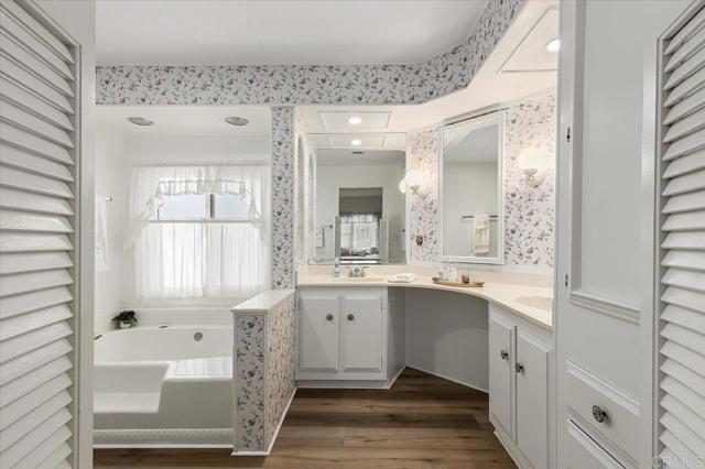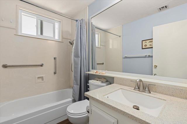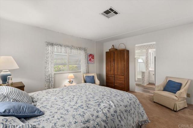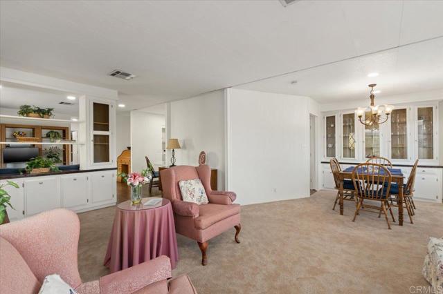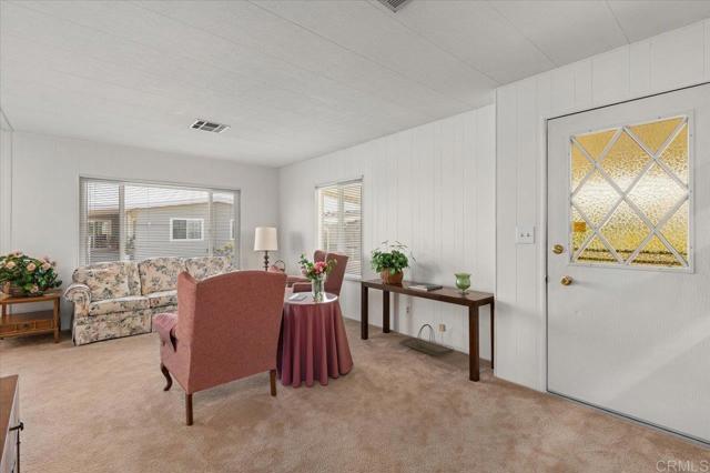 2 bed / 2 bath located in a 55+ rent controlled park with NO property taxes (home is still on HCD registration). But what truly makes this property special is the oversized lot—larger than most in the neighborhood. The expansive yard is perfect for anyone who loves to garden, BBQ, or spend time outdoors with friends and family. Whether you’re hosting summer get-togethers on the spacious wood deck, relaxing on the covered raised porch, or picking fruit from your very own orange tree, this home is designed for both comfort and enjoyment. Two storage sheds add extra convenience and are only allowed when grandfathered in like in this case. The interior of this home boasts fresh interior paint and thoughtfully added recessed lighting, making the interior feel light, bright, and freshly updated. The windows and flooring were replaced in approx. 2018. The roof was replaced in approx. 2010. There are separate Living and Family rooms, plus an office desk nook. The Primary Suite boasts double sinks, a walk in closet, and separate step in shower and soaking tub. Some of the furniture is available if desired! Palomar Estates East is a very active and social 5* community - check out the photos to see some of the amenities this community has to offer! Convenient to shopping, restaurants, Lake San Marcos, two golf courses at Lake San Marcos, another golf course nearby off Twin Oaks, entertainment, lots of parks and trails, the San Marcos Senior Center, and just a short 8 mile drive to Carlsbad beaches! Monthly space rent is only $635.65 and is under rent control!