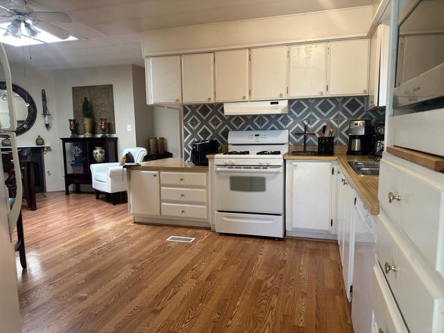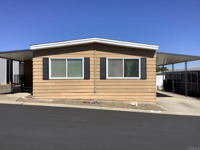 Welcome home to this lovingly cared for home. Bright, open floor plan greets you as you enter the front door. Large living room adjoins the dining area with a built in wall unit. Laminate flooring in Family room, kitchen, guest bath and hallway. Cozy, warm family room with fireplace, built in book shelves, sitting area, and double glass doors to a finished Cal. room. Large kitchen with room for an island, has designer faux tile wall back splash. Dual pane windows. Very nice upraised porch at rear of carport. Easy care yard area, attractive wood, privacy fence at rear of property. No property tax, still on registration. The complex is a preferred 5* park with a lovely clubhouse, pool and enclosed hot tub. Warm, friendly community with many activities to enjoy if desired.