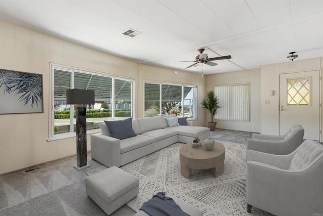 PRICE REDUCTION! Lovely and Spacious home. MOVE IN Ready. New Interior Carpet, Paint and Outdoor Patio carpet. Updated kitchen with soft-close maple cabinets. Central Air Conditioning, room for four cars under dual covered carports. Living and dining areas open up to bright windows with plenty of sunshine streaming through. Relax on the serene patio deck for morning coffee and ocean breezes from the west. Spacious bedrooms on a quiet street, extra closet space in the primary and laundry room. Built in workshop and extra shed for storage. Community Pool, Pickleball Courts, Gym, Spa and Rec Room with social activities throughout the year. Key-gated RV parking available for a fee. Conveniently located near shopping, Lake San Marcos, golf, boating, walking trails, schools, restaurants and freeways. Ample visitor parking. This Immaculate community with beautiful surroundings awaits you!