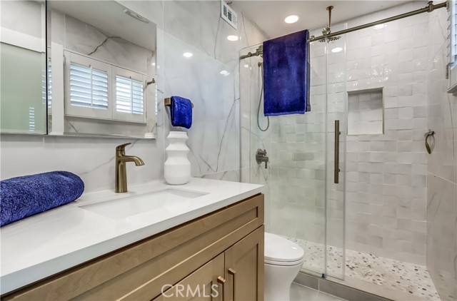 Stunning Ocean-View Condo in Prime Pt. Fermin Location. Experience coastal living at its finest in this upscale and beautifully updated 2-bedroom, 2.5-bath condo, ideally situated in the highly sought-after Pt. Fermin neighborhood of San Pedro. This front unit in an intimate 6-unit complex offers breathtaking views of the Pacific Ocean from the living room, dining area, kitchen, and expansive wrap-around deck—perfect for entertaining or relaxing in the cool ocean breeze. Just steps from scenic cliffside vistas, Pt. Fermin Park, Cabrillo Beach, and the iconic Korean Friendship Bell, this home boasts a light-filled open floor plan and thoughtful designer touches throughout. The upper level features a tastefully remodeled galley-style kitchen with white cabinetry, gorgeous Quartzite countertops, eye-catching tile backsplash, and newer top-of-the-line stainless steel appliances—ideal for any home chef. The bright and airy living space includes large windows, stunning views, and a striking stackstone fireplace as a focal point. Newer wide-plank distressed Hickory hardwood flooring extends through the living areas and bedrooms, complementing the fresh paint throughout. Downstairs, the spacious primary suite offers plantation shutters and a fully remodeled ensuite ¾-bath with high-end porcelain tile and designer finishes. A second generous bedroom, adjacent full bath, and a convenient laundry area with extra storage complete the lower level. Private gated subterranean garage with 2 parking spaces and storage and low HOA. Only a few steps from the cliff overlooking Catalina Island, a block to Cabrillo Beach and Pt. Fermin Park, and a short walk to the iconic Corner Store and Wildlife Nature Preserve. This beautifully maintained condo blends elegance, comfort, and an unbeatable location.... close to the upcoming West Harbor development. This is coastal living at its finest and a must-see for even the most discerning buyers!