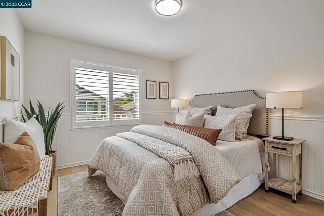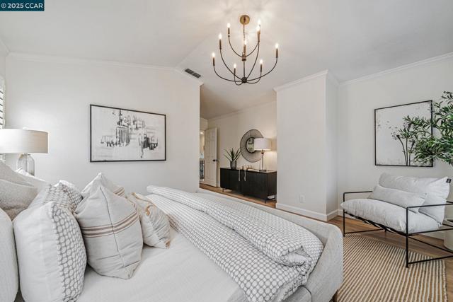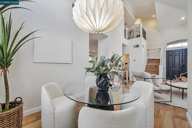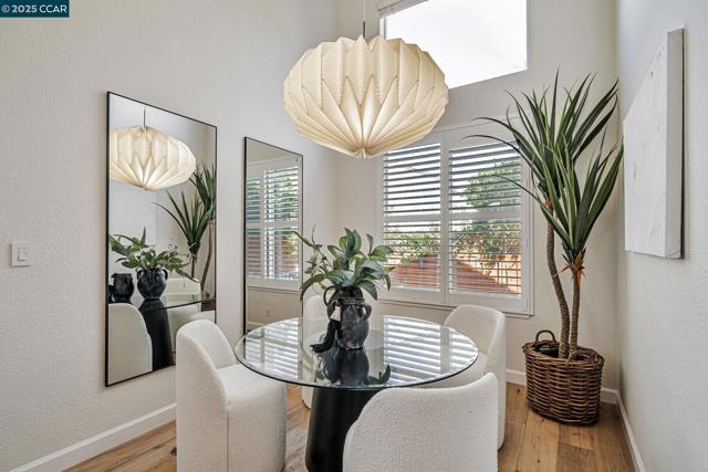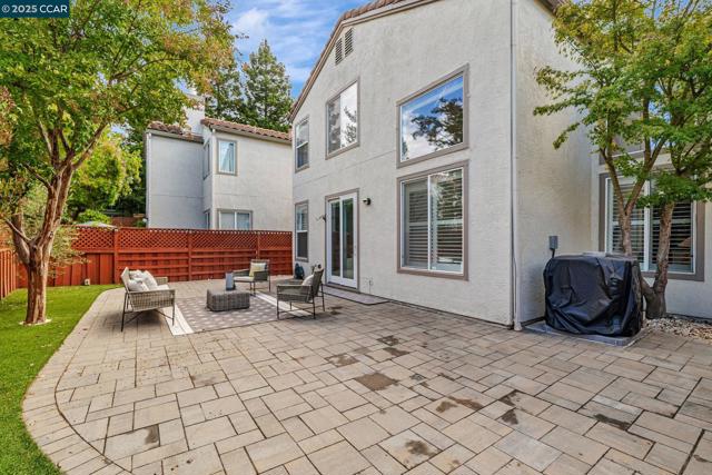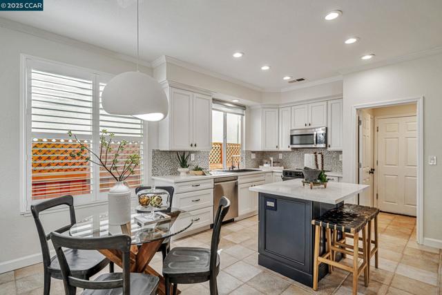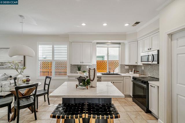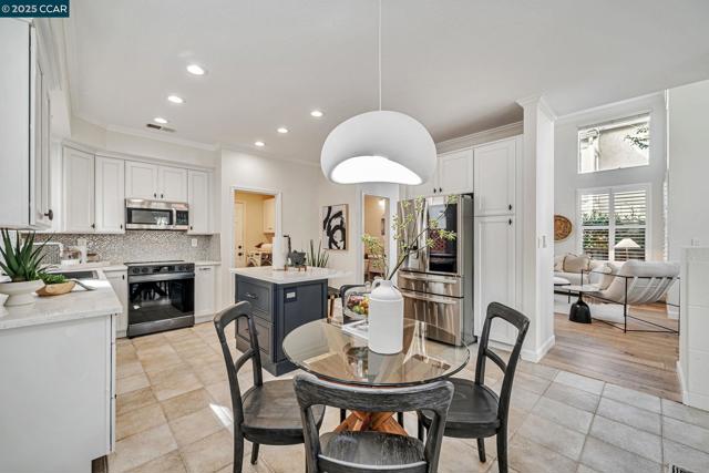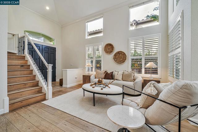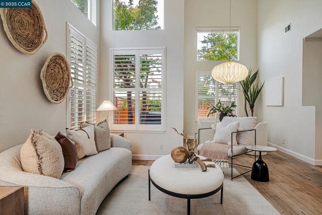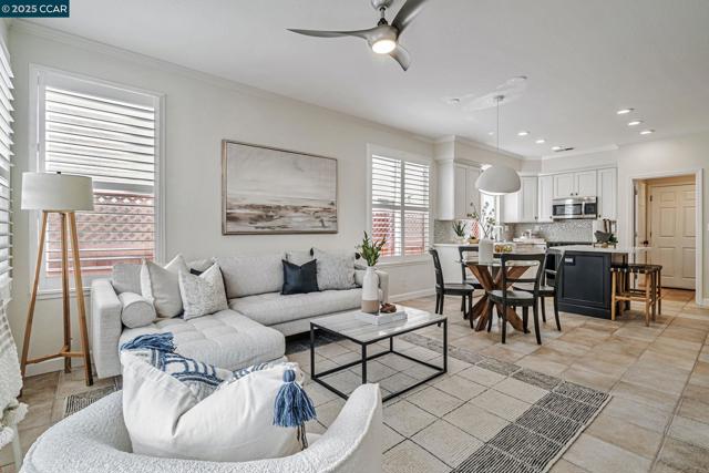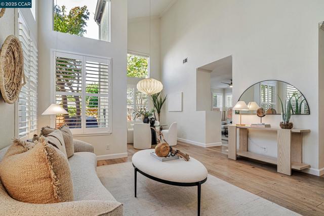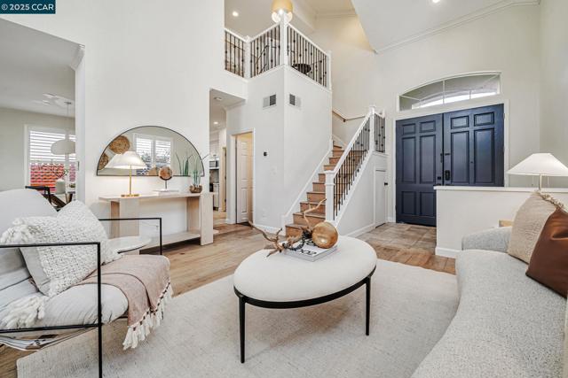Stunning contemporary modern home located in San Ramon's highly desirable gated Vista Pointe community! This meticulously maintained two-story home features over $125,000 in upgrades that enhance every corner of the home, including custom Hunter Douglas plantation shutters, premium hardwood flooring, elegant modern luxury chandeliers, and designer finishes throughout. The updated gourmet kitchen showcases quartz countertops, a center island, full natural stone backsplash, new Samsung Bespoke range, and stainless steel appliances. Additional highlights include custom-designed bathrooms with high-end finishes, Ring doorbell, Nest thermostat, water softener system, full-size LG washer/dryer, wine refrigerator, abundant cabinetry, and an EV charging outlet in the attached 2-car garage. The backyard features Black Diamond pavers and premium artificial turf, offering a lush, green aesthetic year-round, perfect for low-maintenance living and outdoor entertaining. Enjoy resort-style amenities in the gated community, including a clubhouse, pool, spa, and plenty of visitor parking. Located within the award-winning schools, near the downtown City Center, the Marketplace, Iron Horse Trail, Central Park, shopping, dining, and quick access to I-680 for commuters. This is a must see!