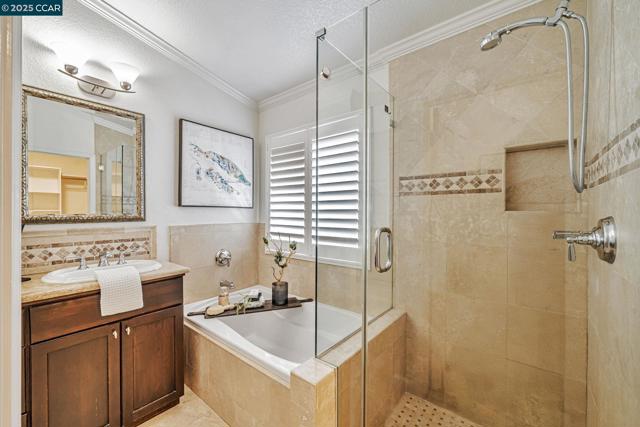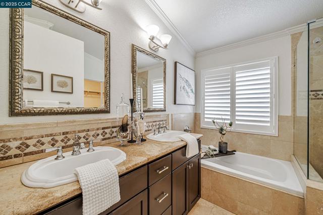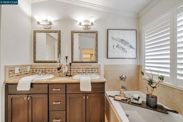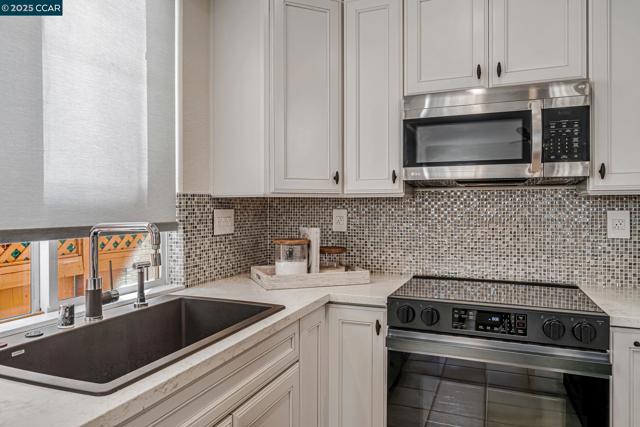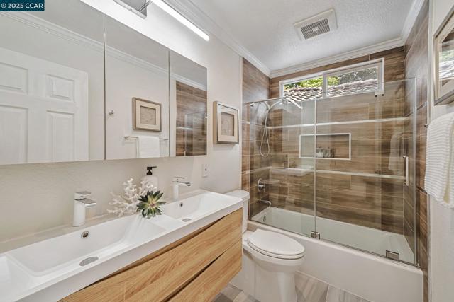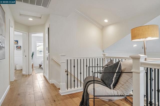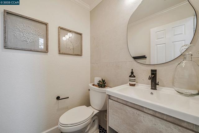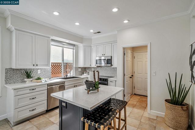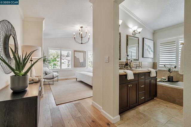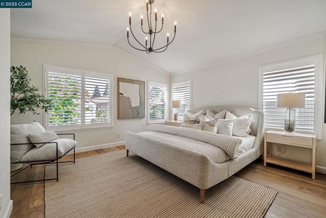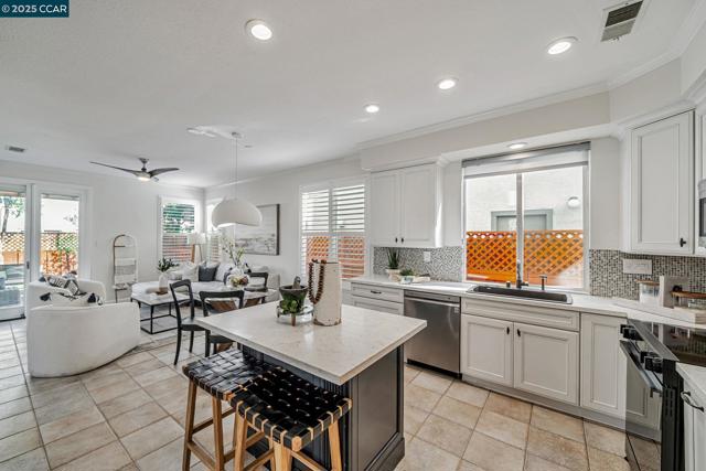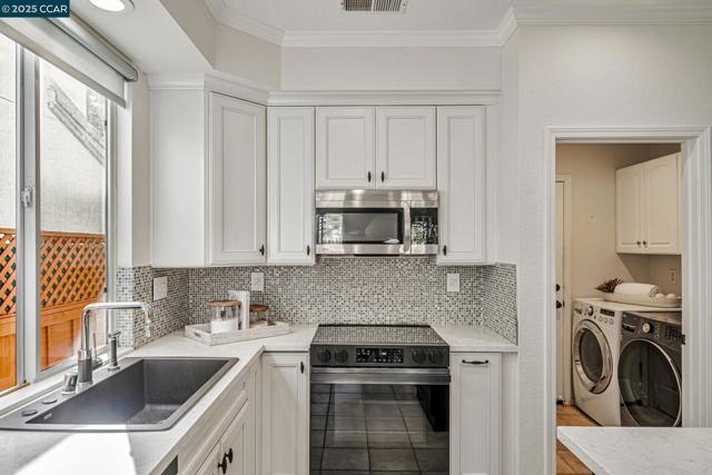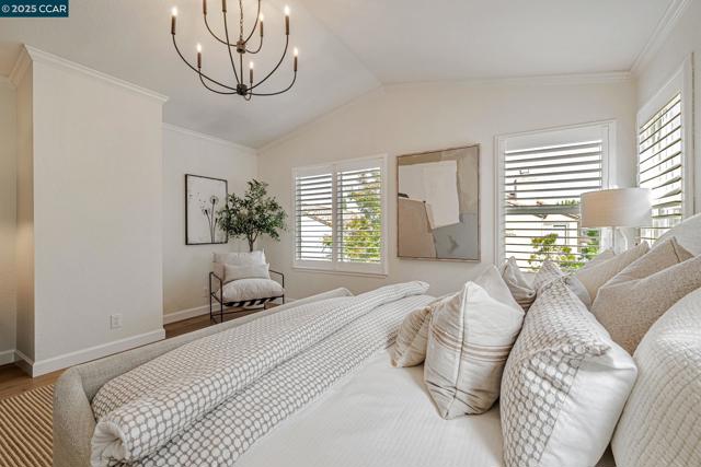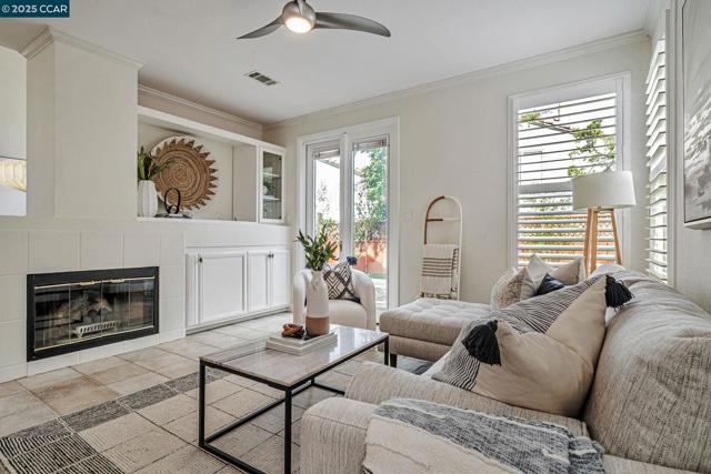 Stunning contemporary modern home located in San Ramon's highly desirable gated Vista Pointe community! This meticulously maintained two-story home features over $125,000 in upgrades that enhance every corner of the home, including custom Hunter Douglas plantation shutters, premium hardwood flooring, elegant modern luxury chandeliers, and designer finishes throughout. The updated gourmet kitchen showcases quartz countertops, a center island, full natural stone backsplash, new Samsung Bespoke range, and stainless steel appliances. Additional highlights include custom-designed bathrooms with high-end finishes, Ring doorbell, Nest thermostat, water softener system, full-size LG washer/dryer, wine refrigerator, abundant cabinetry, and an EV charging outlet in the attached 2-car garage. The backyard features Black Diamond pavers and premium artificial turf, offering a lush, green aesthetic year-round, perfect for low-maintenance living and outdoor entertaining. Enjoy resort-style amenities in the gated community, including a clubhouse, pool, spa, and plenty of visitor parking. Located within the award-winning schools, near the downtown City Center, the Marketplace, Iron Horse Trail, Central Park, shopping, dining, and quick access to I-680 for commuters. This is a must see!