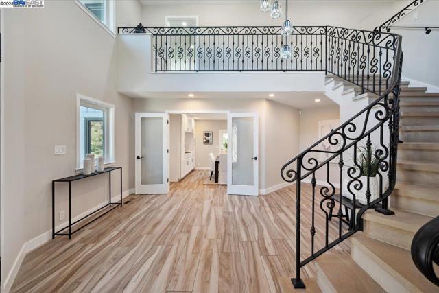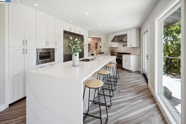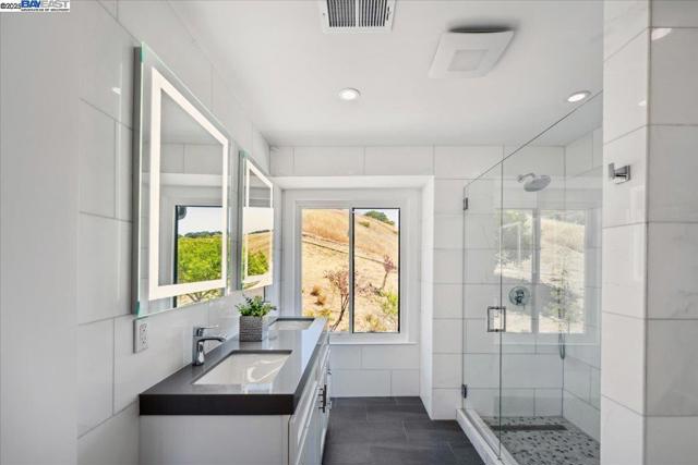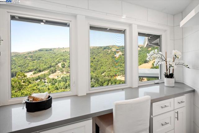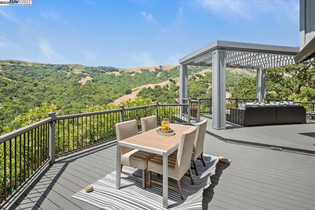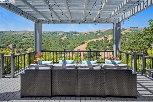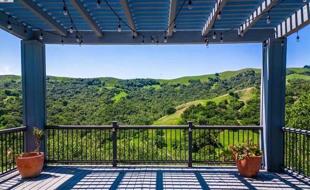 2.25% 30-yr mortgage assumable by qualified buyers. Located in an exclusive gated community and perched atop a scenic hill, this 2022-renovated retreat sits on 5 picturesque acres, blending luxury and nature just minutes from town. The 3,500 sqft home offers 4 bedrooms, 4.5 bathrooms, an office, panoramic valley views, privacy, and backs to over 2,500 acres of parkland. High-end finishes include a hand-forged iron staircase and floor-to-ceiling windows that frame the landscape. The chef’s kitchen features a stainless steel refrigerator, six-burner range with griddle and pot filler, double ovens, microwave, quartz waterfall island, and custom cabinetry. The dining room opens to the outdoors through glass doors and includes a stone counter for entertaining. Bedrooms feature CA Closets and spa-like bathrooms with floor-to-ceiling tile and heated floors. The primary suite has a walk-in closet with illuminated displays, dual vanities, and hillside views. A second en-suite offers privacy for guests or multi-gen living. Expansive wraparound decks reveal views of Bollinger Canyon and lead to a sunroom with sink and stainless counter, perfect for hobbies. A generator provides energy backup. Adjacent lots 315 & 0 Bollinger Estates Ct may be purchased together as a rare 17-acre estate.