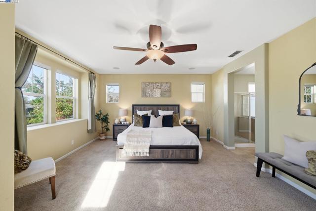 Welcome to 3638 Sandalford Way in the Windermere community, one of San Ramon’s sought after neighborhoods. The downstairs bedroom and full bath provide comfort for visiting guests, family or, perhaps, a home office. Three more bedrooms and two full baths are upstairs. The primary bedroom features a walk-in closet and ensuite bathroom with a dual sink vanity. Also to be enjoyed is the lovely backyard featuring a fountain with on/off control from the house. Among special features not found in most homes, a new owner will be delighted with the remote-control blinds, a whole house fan and the sensor controlled outside lights in the back yard. Hidden Valley Park is a short walk away and the community offers extensive walking trails. If you are looking for great schools, highly rated Hidden Hills Elementary School, Windermere Ranch Middle School and Dougherty High School are nearby. Appliances: Refrigerator, washer and dryer are included. This is a lovely home in a great location! Hurry and make it yours!