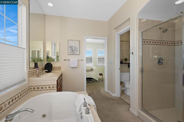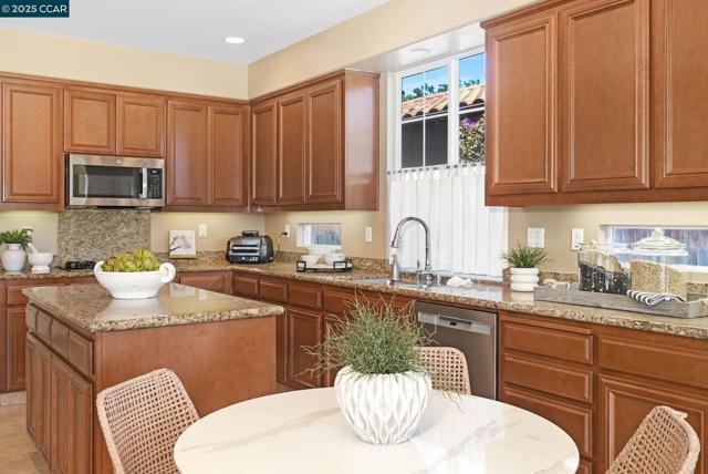 Great views, of The Bridges golf course and rolling hills. No rear neighbors. Bedroom & full bath on the ground floor. 2 story home, Living room with gas fireplace. Kitchen & family room look out to the backyard and views. Home is located on the court and near the park. Great location to shopping, restaurants, parks, fitness club and 680 freeway.