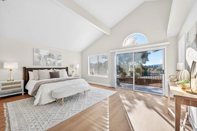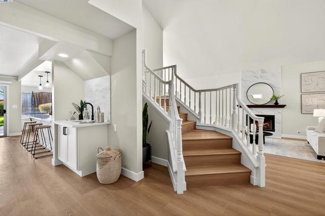 Nestled in the highly sought-after Canyon Crest community, this EAST facing home is a must see! From the moment you step inside you’re greeted with soaring two-story vaulted ceilings, abundant natural light, wide plank flooring, new lighting, and an elegant formal living and dining room accentuated by a floor to ceiling tile fireplace. The FULLY REMODELED KITCHEN is a showstopper featuring custom white cabinetry, quartz countertops, marble backsplash, stainless steel appliances, pendant lighting and a large peninsula with seating. Luxuriously updated bathrooms showcase all custom floor-to-ceiling tile showers and modern vanities with stone counters. This functional floor-plan features ONE BEDROOM & BATH DOWNSTAIRS. The spacious primary suite has a grand vaulted ceiling, two separate closets and slider to a private balcony with expansive views to the San Ramon valley. Enjoy the spacious backyard with no rear neighbors, newer fences, and a large side yard with potential RV/boat access.