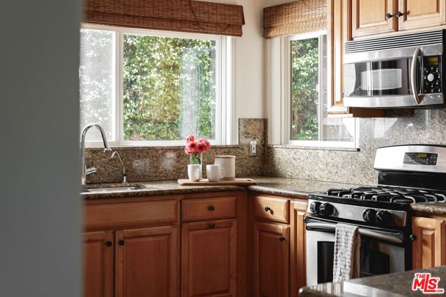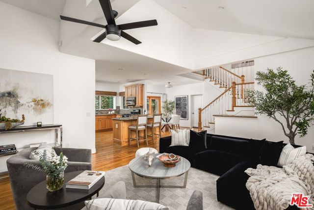 Located in the desirable Peabody Elementary School attendance area in convenient proximity to beloved spots like Handlebar Coffee and the Mission, this bright and spacious two-story home offers an enviable trifecta: comfortable accommodations, private outdoor space, and in-town convenience! Recent upgrades to the nearly 2,000 sq ft home include new landscaping, new air conditioning with dual-zone smart controls, new lighting, updated appliances, and more! With is inviting floor plan and secluded outdoor space, you may find that the hardest decision is whether to enjoy the comforts of home or explore the neighborhood.Step inside to discover soaring vaulted ceilings and open-concept living areas that flow seamlessly from living to dining to kitchen. The expansive yet cozy living room features a gas fireplace, and beautiful wood flooring throughout the home offers an elegant touch. The generous kitchen features a large central island, abundant storage and counter space, and a walk-in pantry. Just off the light-filled dining area, a private backyard and extensive flagstone patio invite effortless indoor-outdoor living whether you're relaxing in front of the outdoor fireplace, enjoying al fresco dining at sunset, or simply feeling the grass under your feet in the fully fenced side yard. A main level bedroom and full bath offer flexible options for hosting guests or creating a home office or studio. Upstairs, you'll find additional bedroom accommodations with plenty of natural light. The primary suite features vaulted ceilings, an en suite bathroom, a spacious walk-in closet, and a private mountain-view balcony. Additional storage areas on the main level and an attached 2-car garage with a dedicated laundry area complete the home's convenient amenities.Tucked away on a tranquil cul-de-sac-like street in the heart of East San Roque, yet just a short stroll or drive from charming De La Vina Street shops & restaurants, this beautiful, move-in ready home is a welcoming retreat awaiting its next happy owners!
