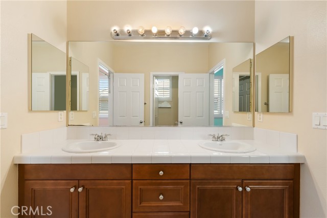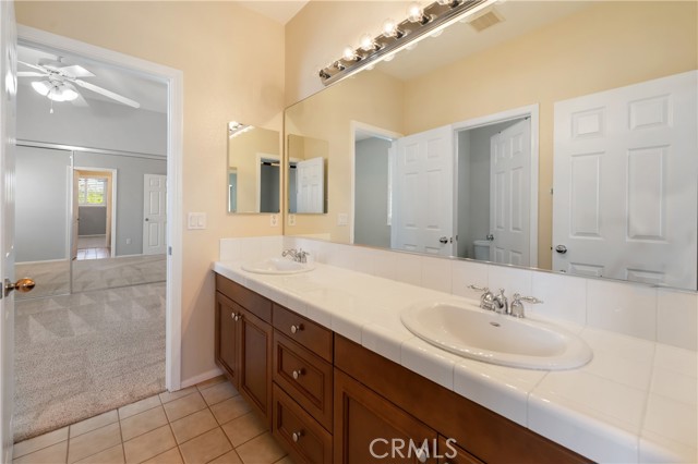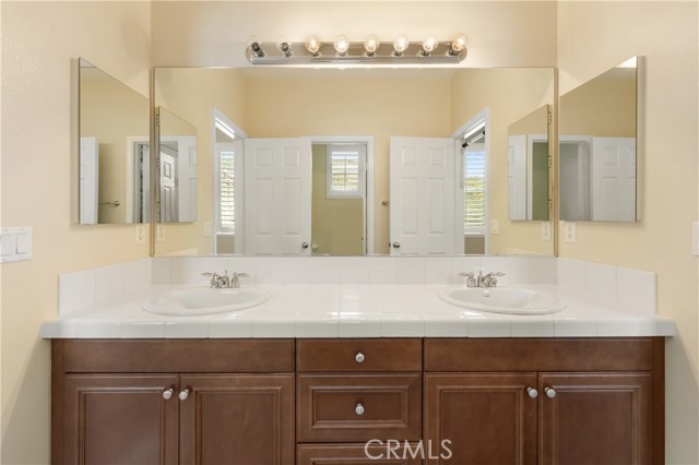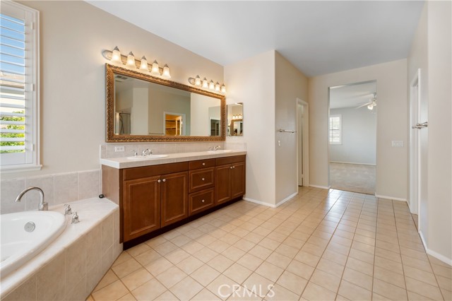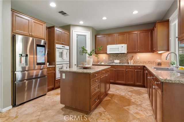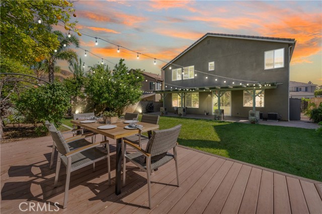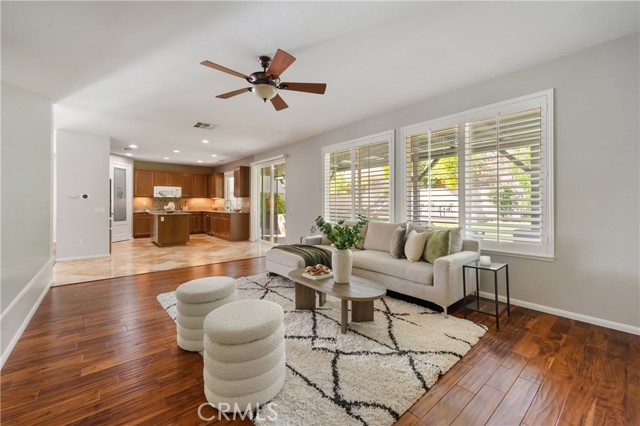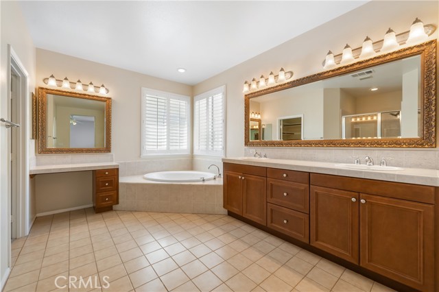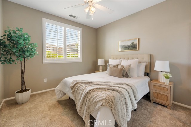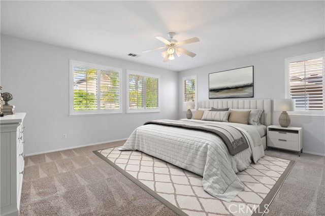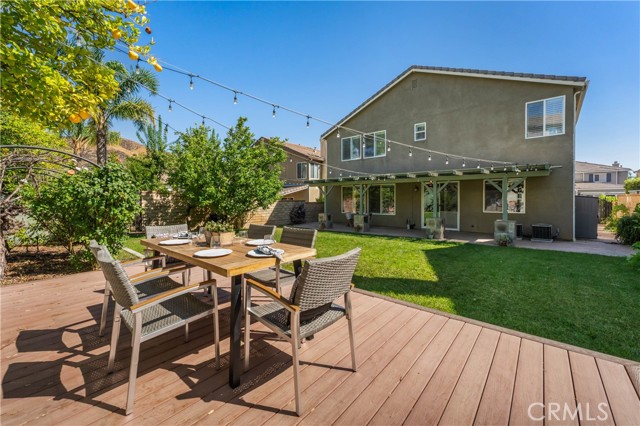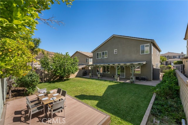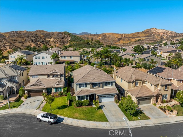 Welcome to this beautifully maintained 6-bedroom, 4.5-bathroom home tucked away in a quiet cul-de-sac in one of Santa Clarita’s most desirable neighborhoods. Designed with both comfort and functionality in mind, this spacious home features hardwood floors, tile, and elegant shutters throughout the first level. The main floor includes a full bedroom and bathroom — perfect for guests or a Mother in law suite! — plus a convenient half bath for visitors. Upstairs, you'll find four generously sized bedrooms connected by Jack and Jill bathrooms, a loft, and a dedicated laundry room. The luxurious primary suite offers a retreat-like experience with a massive en-suite bathroom and dual walk-in closets. Additional highlights include a 3-car garage including a Tesla charger, tankless water heater, and a whole house fan. The backyard is a true oasis, featuring a lush garden with an impressive variety of fruit trees and vines — including figs, apples, lemons, blackberries, strawberries, and grapes. Located within a top-rated school district, this home offers a perfect setting for family living in a safe, vibrant community. NO MELLO-ROOS! A rare gem — come see it for yourself!