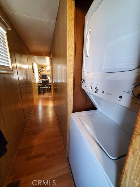 Welcome to this 720 square foot home located in a quiet family park. This home is on a large lot with a fenced side yard. It features a large sunroom, that could be a 3rd bedroom. The living room has laminate flooring, faux wood blinds and lots of natural sunlight. The primary bedroom has carpeting, a large closet and faux wood blinds. The bathroom has a shower/tub combo and a large vanity. The unit includes a stackable washer and dryer. The second bedroom has laminate flooring and faux wood blinds. The kitchen/dining room has laminate flooring, a built in cabinet/hutch, upgraded lighting fixtures. The seller has upgraded the electrical in the home. This home is ready for its next owners, schedule your showing today!