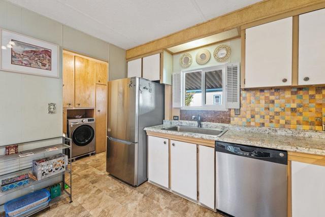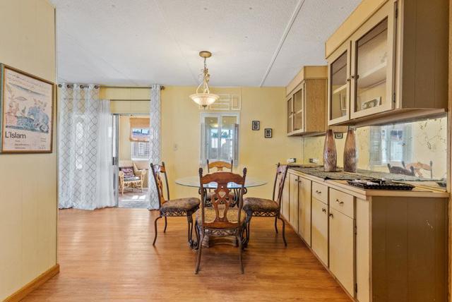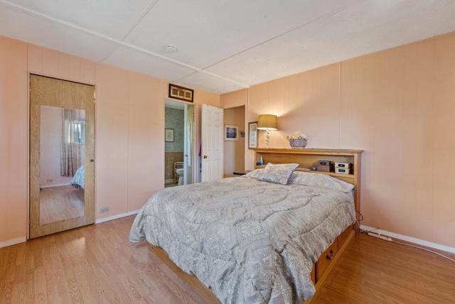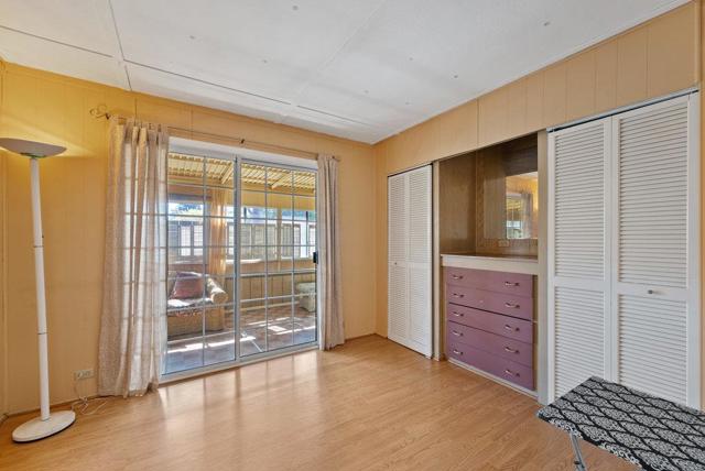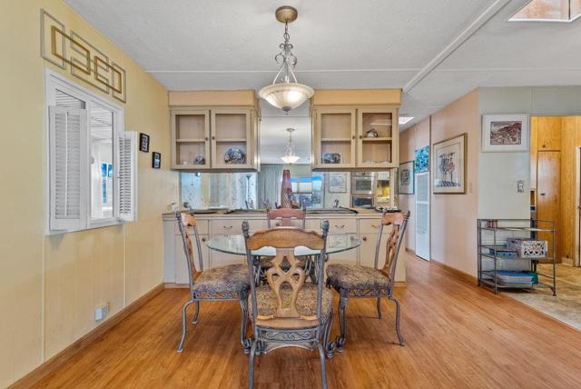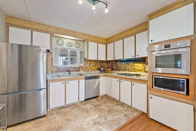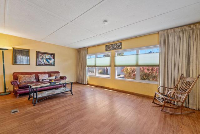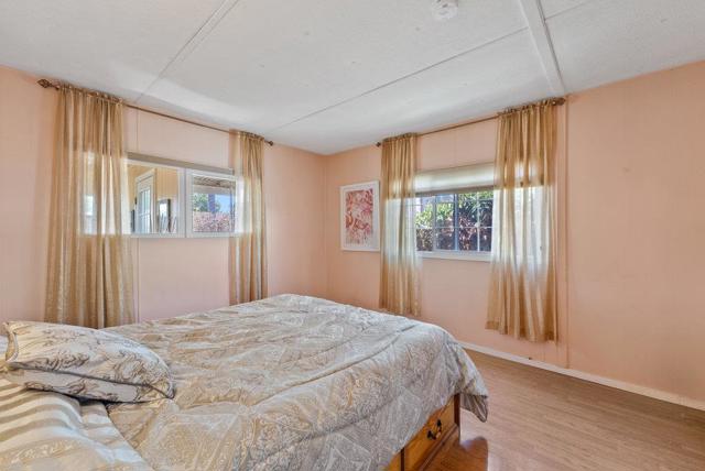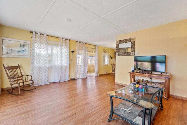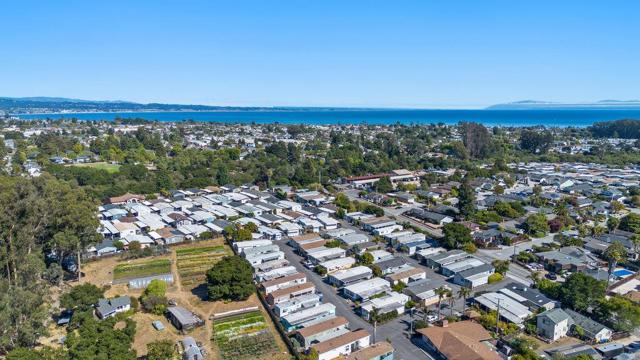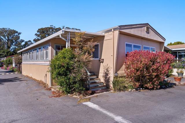 Great corner lot, close to the Santa Cruz Harbor, Beaches, Cafes and restaurants. Low HOAs at just $200/ MONTH; no buy in fee. The entrance to this lovely home brings you into the bonus sunroom, lots of extra room for crafting, reading and entertaining. A nice prelude to the living area that is large and welcoming with plenty of natural light. The dining area offers a built-in buffet with plenty of storage. The kitchen offers modern appliance a gas cooktop and newer built in oven, refrigerator and dishwasher. Just off the kitchen the laundry/storage area door leads to the side yard. Primary bedroom includes a en suite bathroom and a "Generous Walk in closet." Many Energy-efficient dual-pane windows through out the home.. This is a Co-op Park with low HOA fees. Great Location!!! This sweet co-op park is for those 55+