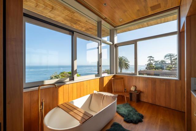 Surf House sits at the edge of one of the most beautiful, wild, and biologically diverse treasures in the world- the Monterey Bay. Designed by Feldman Architecture and Commune Design, this award winning home fits into the coastline as if created by nature's hand. Lovingly crafted from reclaimed and repurposed Monterey Cypress, the refined elegance of this two-story home reflects the natural world, and the culture and values of the world-renowned neighborhood in which it resides. Heartwood from Monterey Cypress was integrated into all aspects of Surf House's design. The resplendent floors, paneling and cabinetry glow in the natural sunlight that illumines this gloriously tranquil home. Surf House is roughly 700 feet to access stairs leading to The Hook, one of many nearby crown jewels in the Santa Cruz World Surfing Reserve. A few of many highlights include a chef's kitchen, an outdoor kitchen, a copper jacuzzi, an infrared sauna, and a surfboard room with wet bar, overlooking a private courtyard with a fireplace. From the front courtyard through the cascading floor to ceiling-high doors of the Great Room, there are stunning views, and vibrant life-affirming rhythms of the Bay- a paradise of solace, an entertainers playground, a sanctuary of inspiration and peace.