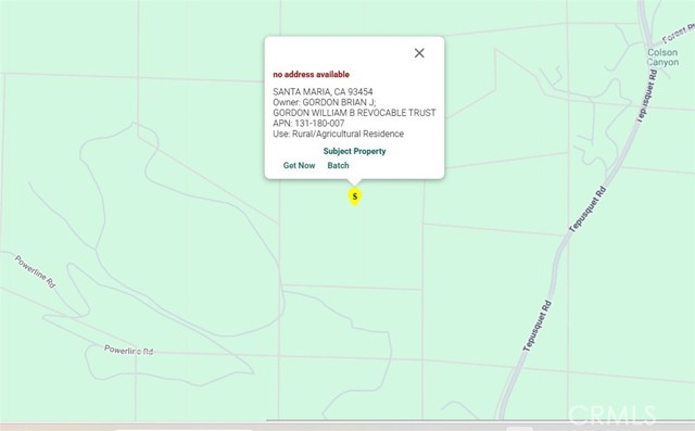 Fabulous opportunity to own 45+/- acres with views from the top of the world! This property nestled in Tepusquet Canyon is absolutely stunning. Rolling hills studded with oak trees give way to an expansive view of the canyon. The property has one flat area for potential future building and a power pole on this portion of the land. The only thing they aren't making any more of is land. Call your favorite agent today to make this slice of Central Coast land your own!