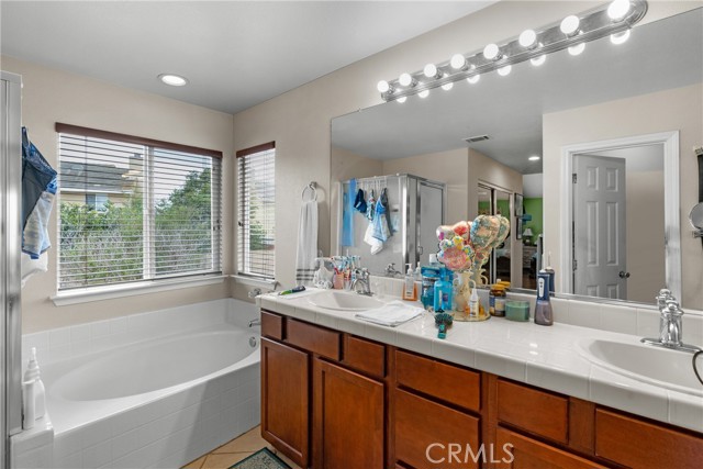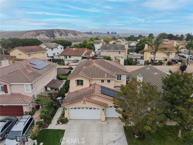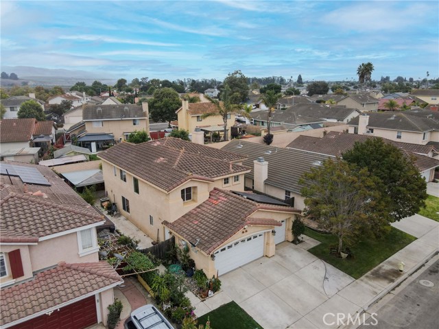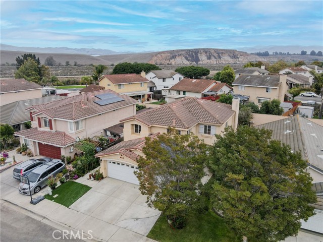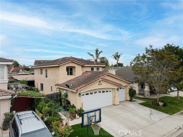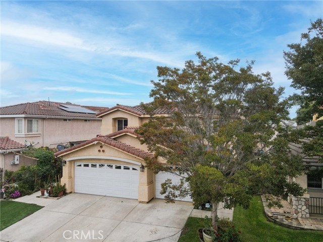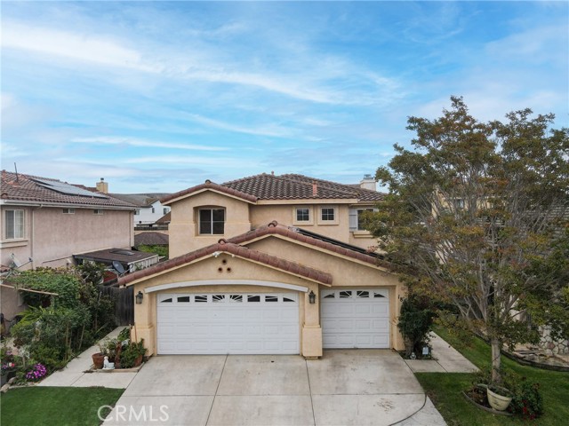 This beautifully maintained two-story Spanish-style home, built in 2001, and with 2,791 square feet, offers 5 spacious bedrooms and 4 full bathrooms, including a luxurious master suite with a fireplace, walk-in closets, master bath with dual sinks, and a garden tub with a separate shower, plus a second master bedroom with its own private bath. Designed for comfort and functionality, the home features a formal living room with fireplace, separate family room, dining room, indoor laundry, and an attached 3-car garage with exterior solar lights. The upgraded kitchen boasts custom cabinetry, Quartz countertops, a center island, filtered water-leased, and stainless steel appliances. Additional upgrades include tile flooring in the kitchen and dining area, laminate flooring throughout the rest of the home, custom interior paint, central heating and air conditioning, and a fully paid Tesla solar panel system to be transferred through escrow. The exterior is equally impressive with professionally landscaped front and back yards, a built-in BBQ pit, wet bar, and a variety of fruit trees, plants, and irrigation system with timer—perfect for entertaining. Located in the desirable Northeast Santa Maria area, this home is close to schools, parks, and offers convenient freeway access.