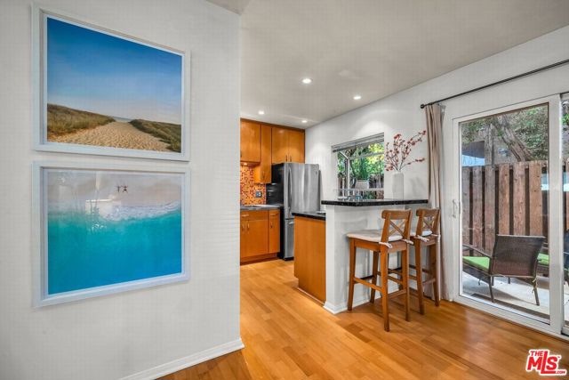 In the heart of Santa Monica, this boutique Mid-Century modern building, built in 1963, offers just six residences. Unit #1 is a stylish ground-floor home featuring a private entry patio framed by lush landscaping. Inside, enjoy a light-filled open floor plan with newly buffed and coated wood floors, fresh paint, double-pane windows, and a convenient breakfast bar. Sliding doors off the living room open to a fenced outdoor patio, ideal for lounging or entertaining. This complex has no pet restrictions. Additional features include tandem parking for two cars, extra storage, and the flexibility to add in-unit laundry (per HOA). With a Walk Score of 90 and a Bike Score of 96, you're just moments from the beach, vibrant restaurants, cafes, and nightlife along Santa Monica Boulevard. Whether as your own coastal retreat, an income property, the HOA has no rental restrictions, and low HOA dues. This home captures the very best of Santa Monica living.