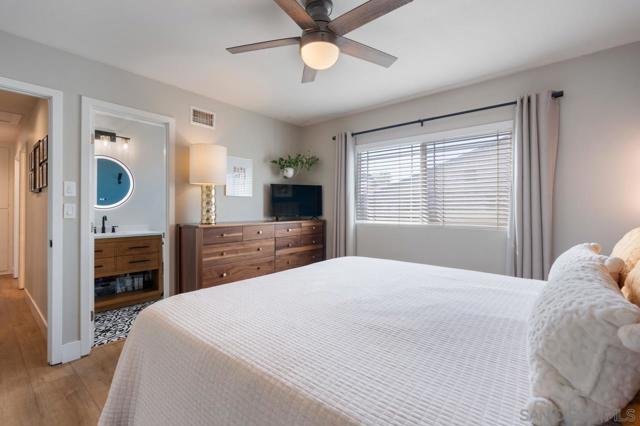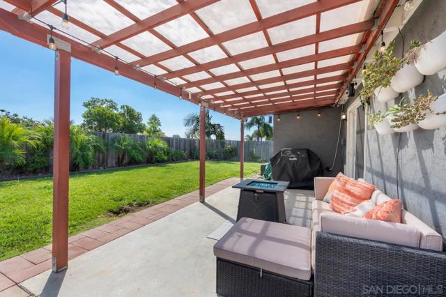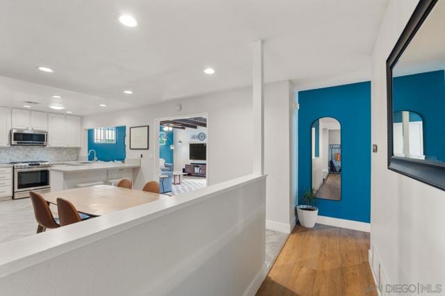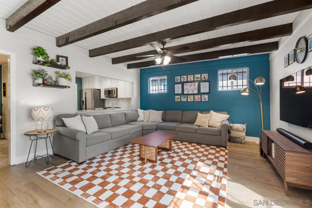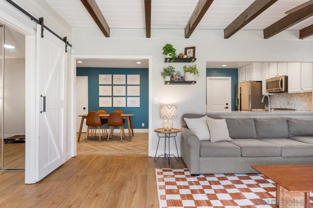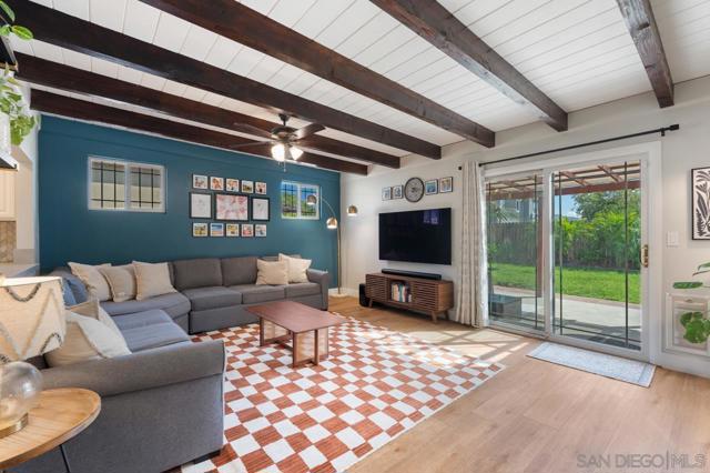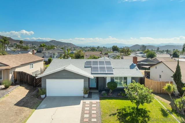 Welcome to 10113 Gem Tree Way in North Santee! Nearly every surface has been updated. The bright kitchen offers quartz counters, marble backsplash, and peninsula seating open to spacious living areas. Family room with vaulted, beamed ceilings connects to a flex room via barn doors, ideal for office, playroom, or guest space. Front living room with fireplace and shutters adds another retreat. Down the hall: three bedrooms, remodeled primary bath, mirrored closets, and LVP flooring. Garage includes workbench, loft storage, and laundry. Backyard features patio, lawn, and peek-a-boo mountain views. Move-in ready with paid solar, dedicated outlet for EV charger, Nest thermostat, central A/C & heat, plus newer roof and exterior paint. Minutes to Santee Lakes, Trader Joe’s, Target, Costco, Sprouts, library, coffee shops, Woodglen Vista Park, Santana High, and two TK-8 schools. A true East County gem! *All information is reliable but not guaranteed and should be verified by buyer before close of escrow.*