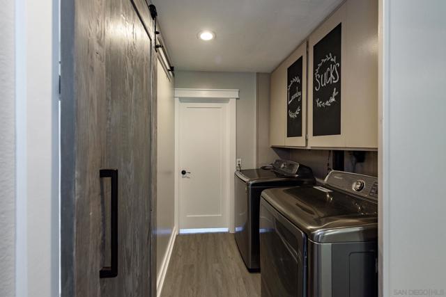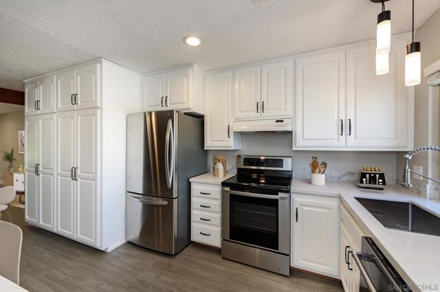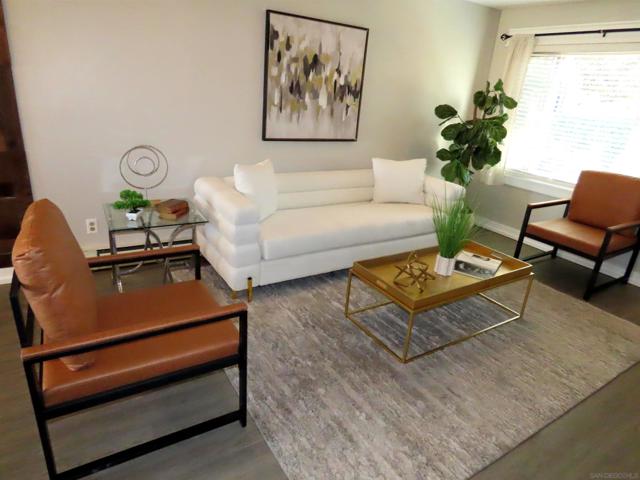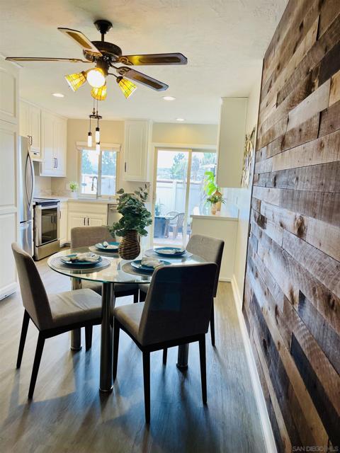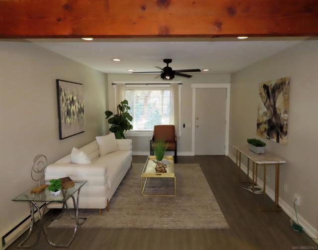 MOTIVATED SELLER! Condo is staged and ready to be sold! Gorgeous Condo in an Unbeatable Location! Located just steps from Mission Trails Regional Park and Kumeyaay Lake, this beautifully updated modern condo lives like a detached home—no upstairs neighbors and everything on one convenient level. Situated in a Planned Unit Development (PUD) community, this home offers comfort, style, and privacy. The kitchen features stainless steel appliances, elegant Volakas marble countertops with a satin finish, a new backsplash, recessed lighting, and an abundance of cabinet and pantry space. Enjoy seamless indoor-outdoor living with direct access to a spacious private patio—perfect for entertaining, relaxing, or gardening. Fresh paint and stylish vinyl plank flooring run throughout the home. See supplement! You’ll appreciate the open-concept layout with thoughtful designer upgrades, including custom built-ins, a charming barn door, and a trendy shiplap accent wall. A skylight in the bathroom fills the space with natural light, while a full-size washer and dryer are tucked conveniently into the hallway closet. Both bedrooms feature ceiling fans and AC window units for year-round comfort. The large enclosed patio includes an artificial grass area—ideal for pets! Just a one-minute stroll to the community pool. HOA covers water and trash, and the unit includes two assigned parking spaces. With quick access to the 52 and 125 freeways, this prime location makes commuting and exploring a breeze. Come experience the beauty and warmth of this welcoming community—you’ll love calling it home.