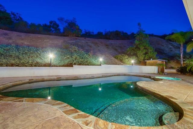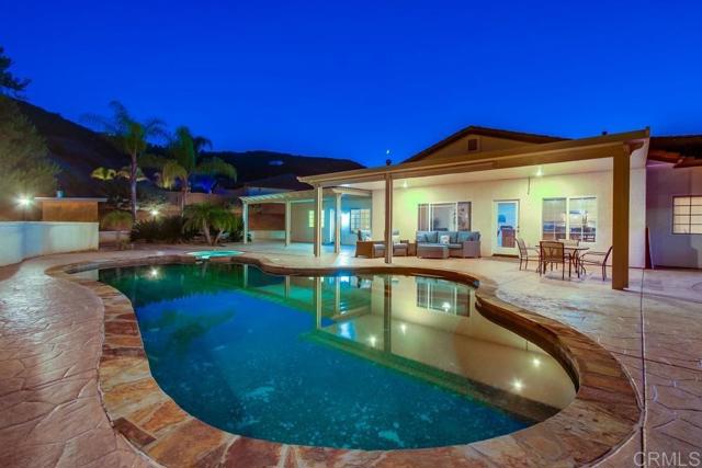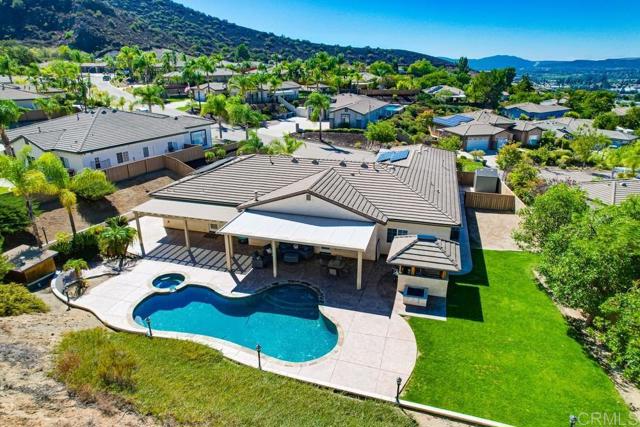 Immaculate Single-Level Home in Santee!| Over ½ Acre | Entertainer’s Dream!! Welcome to this elegant and expansive single-level home in the prestigious BlackHorse Estates of Santee. Perfectly positioned on over half an acre, this immaculate property offers luxurious living, exceptional privacy, and unmatched versatility—ideal for entertaining, multigenerational living, or accommodating adult children. Step inside to discover a thoughtfully designed floor plan featuring 3 spacious great rooms, 2 fireplaces, and 4 generously sized bedrooms one of which can be a private suite with its own entrance and bathroom—perfect for guests, extended family, or rental potential. The gourmet kitchen is a chef’s dream, boasting granite countertops, stainless steel appliances, and a large center island—all seamlessly connected to the open living and dining areas. Step outside to your own resort-style oasis: A sparkling pool with covered equipment protected by a shed structure. A built-in BBQ island and gas firepit for added evening ambiance. A solid covered patio for year-round enjoyment as well as a shaded covering to allow in some sun. A sectioned off pet area on the north side of the home for your furry family members. Open space behind the property with no rear neighbors—offering tranquility and privacy. Additional highlights include: Owned solar system—producing credits with SDGE. Concrete tile roof for added fire protection. 2 central A/C units for zoned climate control 3-car garage plus gated RV/toy parking. Expansive driveway and lush landscaping. This is more than a home—it’s a lifestyle. Whether you're hosting unforgettable gatherings or seeking space for multiple generations, this rare BlackHorse gem checks every box.