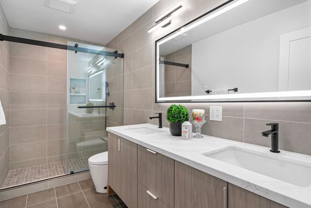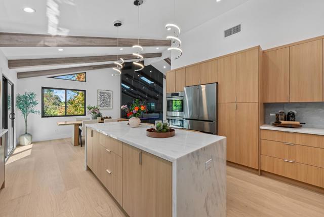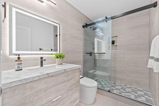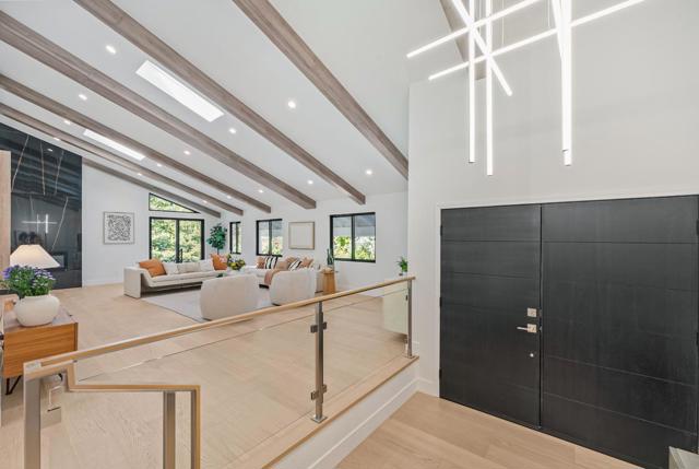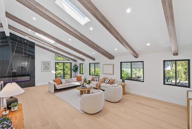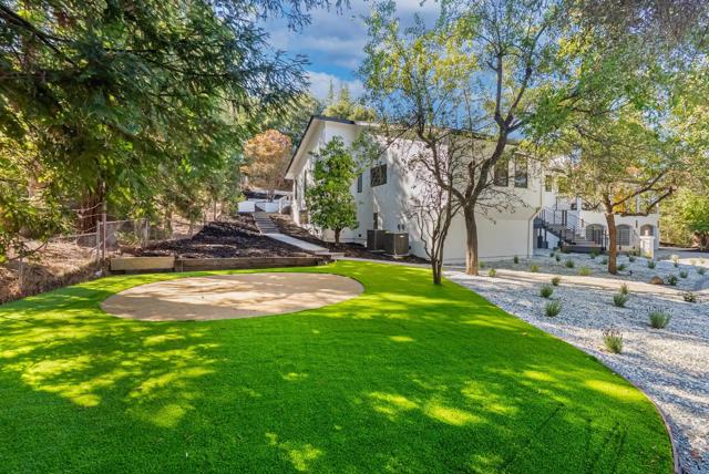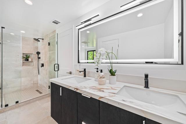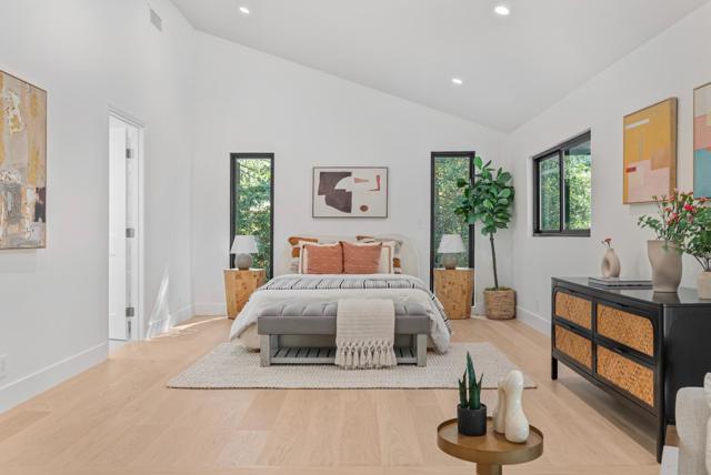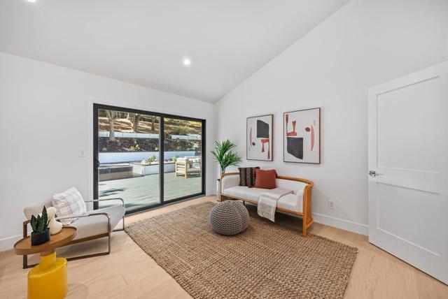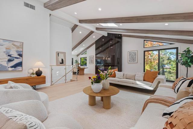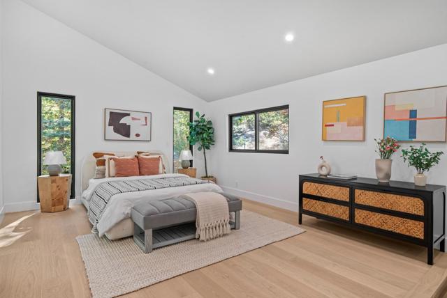 Located on a quiet private road cul-de-sac, this completely remodeled luxury home offers 4,861 sqft of luxurious living space on a 1+ acre park-like lot. The main level (over 3,000 sqft) features 4 bedrooms and 3.5 baths, including 2 master bedrooms and a bright open floor plan with a high-ceiling great room and formal dining area. The lower level offers 2 additional spacious master bedrooms, a living area, and a den/flex room perfect for guests & multi-generational living. Enjoy European oak engineered wood floors, custom natural wood kitchen cabinetry, marble waterfall island, and Bosch stainless steel appliances. All bathrooms are spa-inspired, finished with Porcelanosa premium tiles and designer fixtures. The property features a 3-car garage and a bonus 700 sqft basement (not included in the sqft), easily convertible into a home theater. Outdoors, enjoy the circular driveway with new pavers, low-maintenance turf, yard lighting, fire pit, newly landscaped front, side, and backyard, deck, waterfall feature, jacuzzi, and multi-level terraces creating your own private hiking park. This is a rare opportunity to own a spacious, modern, and tranquil estate in one of Saratoga's most sought-after neighborhoods offering the perfect blend of luxury, privacy, and resort-style living.