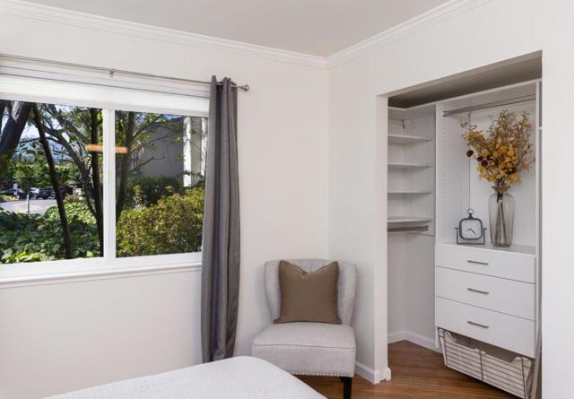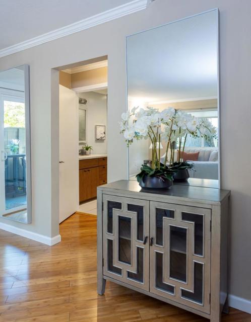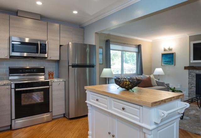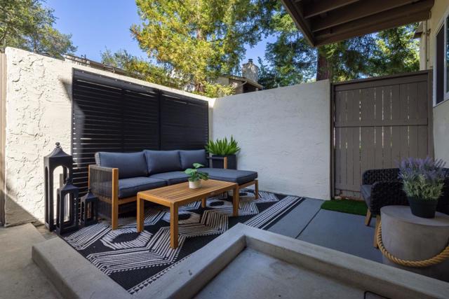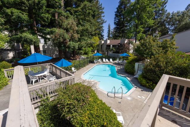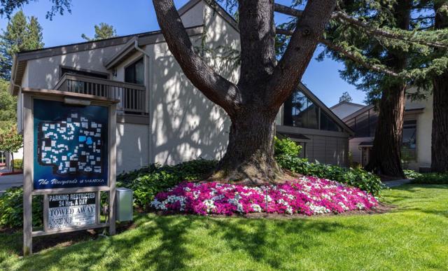 Welcome to this beautifully updated 1-bedroom, 1-bath condo nestled in the serene and highly desirable community of "The Vineyards Saratoga". Surrounded by majestic redwood and oak trees, this spacious end unit offers peace, privacy, and comfort in a prime location. Enjoy stylish bamboo flooring throughout, a cozy fireplace, and abundant natural light through double-pane windows and sliders complete with remote-controlled blinds for added convenience. The open, single-level layout is wheelchair accessible, making it perfect for ease of living. The kitchen features sleek stainless-steel appliances, while two private patios extend your living space outdoors. A nicely finished detached garage provides additional storage and convenience. Located directly across from the community clubhouse, pool, spa, and fitness center, this unit offers the best of The Vineyards lifestyle. All this, plus award-winning Saratoga schools and easy access to HWY 85, shopping, dining, and more this is a rare find you wont want to miss!