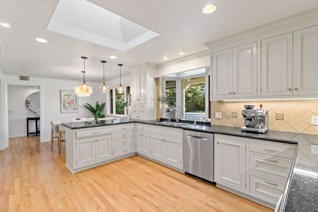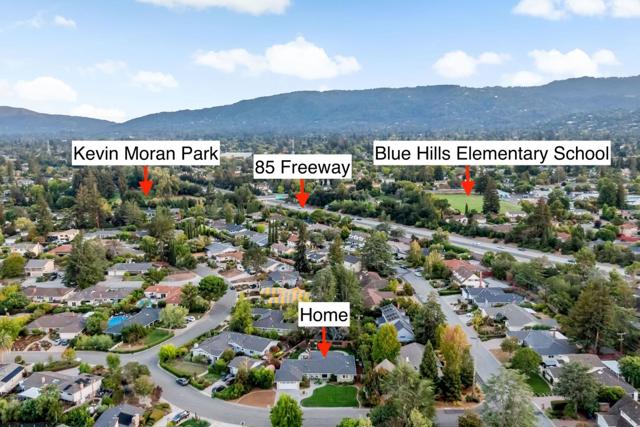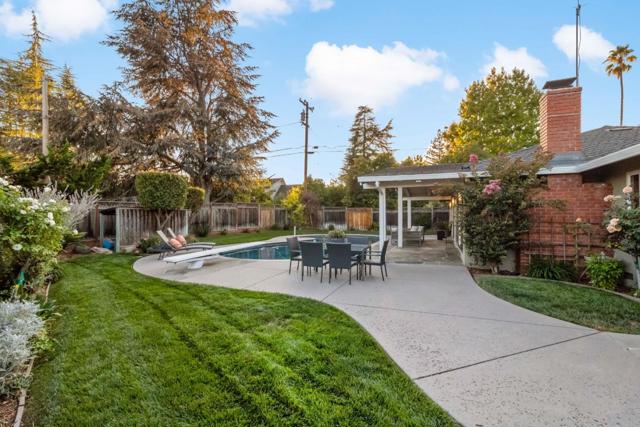 Welcome to 19920 Viewridge Drive, an elegant single-level home in Saratoga's sought-after Blue Hills neighborhood. This beautifully updated 4-bedroom, 2.5-bath residence blends classic charm with modern comfort. The spacious living room features a vaulted wood-beamed ceiling and stone fireplace, while the chef's kitchen offers granite counters, custom cabinetry, a bay window, bar seating, and premium appliances including two ovens and a gas range. The living, family, and primary suite open to a stunning backyard oasis with lush lawns, pool, and patio perfect for indoor-outdoor living and entertaining. The primary suite is a peaceful retreat with a remodeled bath; three guest rooms are served by remodeled hall and powder baths. Recent updates include a new presidential roof and attic insulation (2023), dual-pane windows, central heat & AC, and a whole-house fan. Conveniently located near shopping, dining, commute routes, and top-rated Blue Hills Elem, Miller Middle & Lynbrook High.