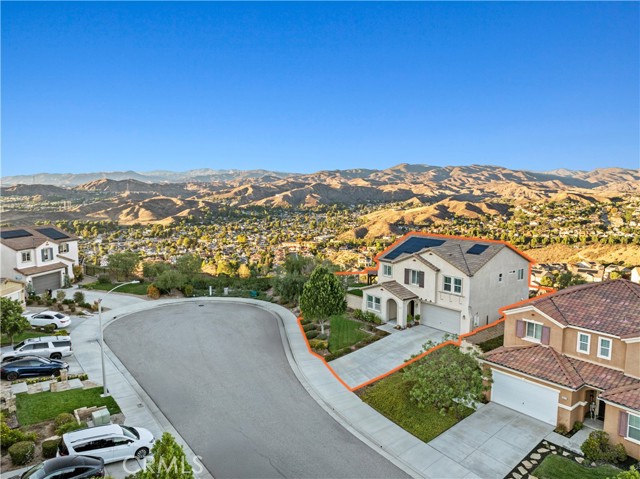 Welcome to this stunning 4-bedroom + loft, 3-bathroom Plum Canyon home, offering 2,371 sq ft of beautifully designed living space on a premium cul-de-sac lot with JAW DROPPING VIEWS from sunrise to sunset and owned solar! Step inside to find a full bedroom and bathroom on the main level, perfect for guests or multi-generational living. The gourmet kitchen boasts granite countertops, upgraded appliances including a Viking stove, a spacious breakfast bar, and sleek cabinetry with abundant storage—all opening seamlessly to the dining and living areas, where you’ll enjoy panoramic views from every window. Upstairs, you’ll find two additional well-appointed bedrooms, including a spacious primary suite with breathtaking views, a spa-inspired ensuite with soaking tub, separate shower, and large walk-in closet. The versatile loft—also with amazing views—offers the ideal space for a home office, gym, or playroom, while the upstairs laundry room adds everyday convenience. Step outside to your beautifully landscaped yard, complete with covered patio, pergola-covered spa, and plenty of space for outdoor entertaining—all with unobstructed views of Santa Clarita Valley. With energy-efficient owned solar, this turn-key home is as smart as it is stunning. Located in one of Santa Clarita’s most desirable neighborhoods, close to top-rated schools, parks, shopping, and dining. Don’t miss your chance to make this your NEXT HOME!