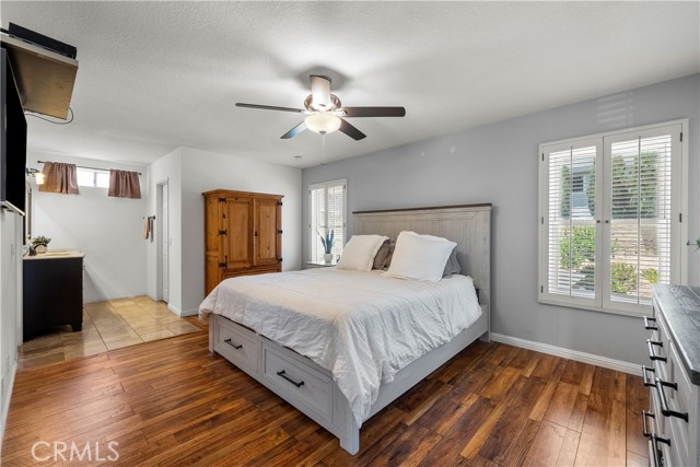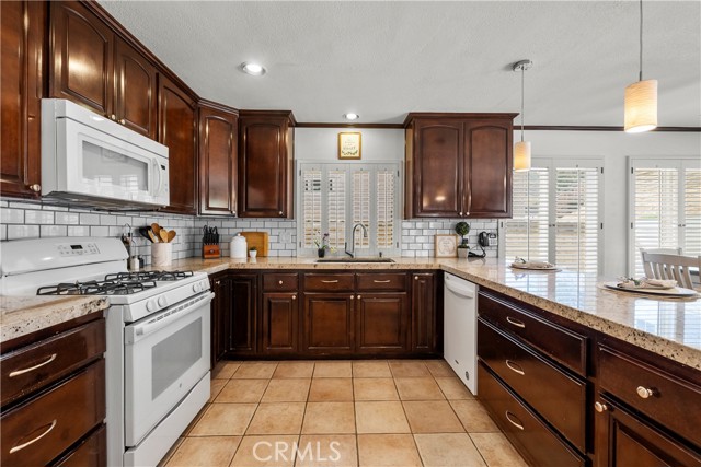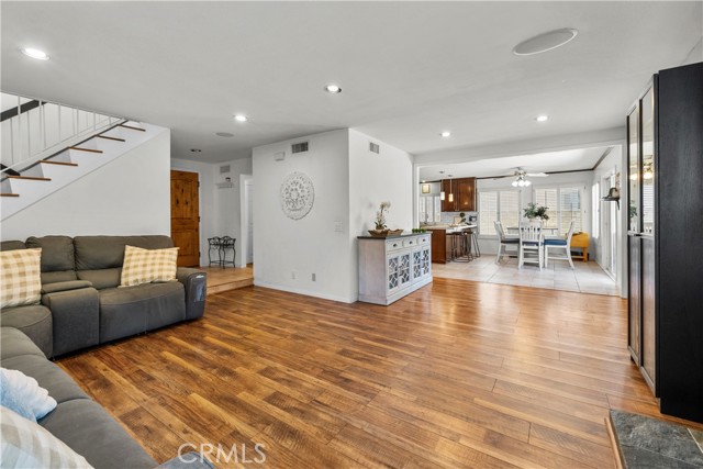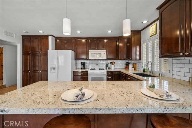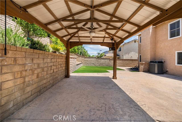 Welcome to this upgraded 4-bedroom, 3-bathroom home, located in a quiet cul-de-sac in one of Santa Clarita’s most desirable neighborhoods with an AMAZING HOA with NO MELLO ROOS. This home features modern upgrades and a comfortable open concept living space! The heart of the home is the beautifully upgraded gourmet kitchen, featuring elegant granite countertops, a sleek subway tile backsplash, and a spacious area perfect for both cooking and entertaining. This kitchen seamlessly flows into the open floor plan, with wood and tile flooring throughout the first floor and two of the bedrooms. Enjoy modern comforts like surround sound, ceiling fans in the kitchen and every bedroom, a high-efficiency upgraded air conditioning system, and a whole house fan for energy-saving ventilation. Another perk is the EV car charging station in garage. This home also features a floor plan with 3 bedrooms upstairs and 1 bedroom with a full bath downstairs. The formal dining area and family room provide plenty of space, and the refinished wood entry with double doors adds a welcoming touch. Fresh paint and upgraded carpets make this home move-in ready. The backyard is beautifully landscaped with eco-friendly artificial grass, a storage shed, and a pergola providing shade for outdoor gatherings. The large yard also includes fruit trees. The home is close to community amenities, pool, playground, pickle ball courts, tennis court, basketball court, and many parks. Minutes away from award-winning schools, shopping, and restaurants, this home offers a great balance of convenience and comfort. With remodeled bathrooms, upgraded appliances, and well-maintained finishes, this home is ready for its new owner.