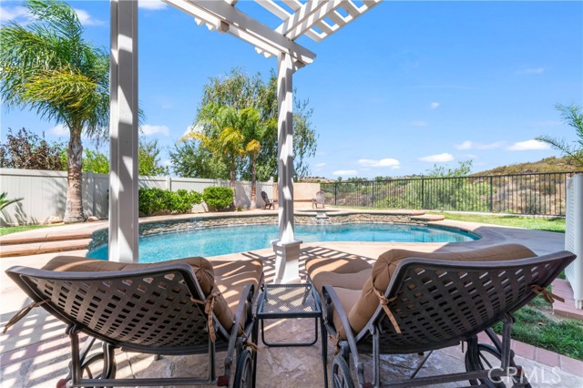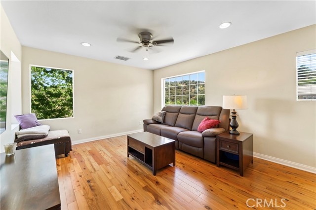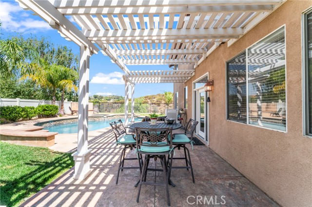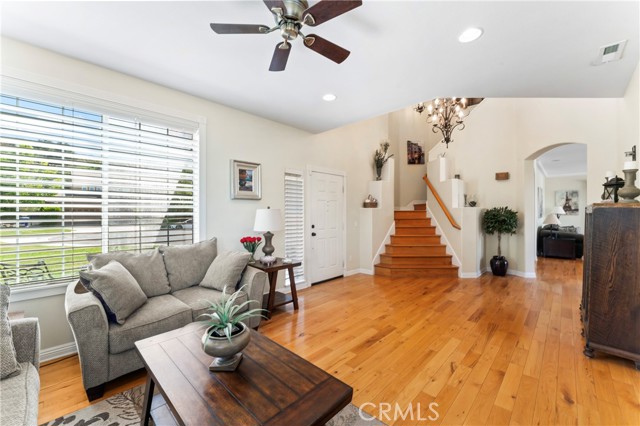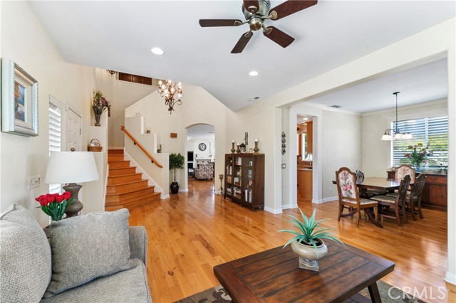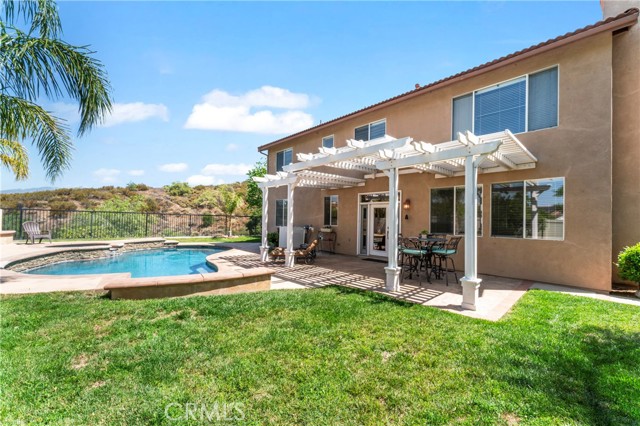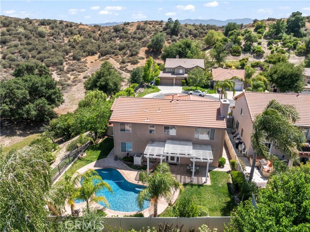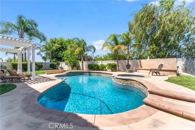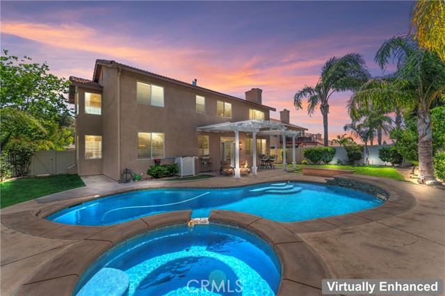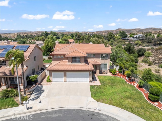 Welcome to the Oak Ridge development of Circle J Ranch! Nestled at the end of a peaceful cul-de-sac, this stunning 4 beroom, 3 bathroom two-story home offers the perfect blend of comfort, elegance and convenience-with No HOA or Mello Roos.This property is ideal for those who crave both space and privacy. Step inside to discover custom flooring throughout, a formal dining room for memorable gatherings and a spacious living room that flows effortlessly into a bright and open kitchen. The kitchen overlooks a cozy family room with beautiful backyard views-perfect for entertaining or simply relaxing with loved ones. Downstairs you'll find a half bathroom conveniently located near the laundry room with direct access to the 3 car garage. Upstairs all 4 bedrooms await, including a luxurious master suite featuring a dual sink vanity in Both bathrooms, a generous walk-in closet and a separate linen space for added convenience. Step out onto your backyard -a serene retreat to savor morning coffee views. The gorgerously landscaped front and backyard are designed for both relaxing and entertaining, complete with a salt water blue pebble tech pool and Jacuzzi to enjoy under the stars. Ideally located near top rated schools, shopping and with easy access to major 5 and 14 freeways. This home has everything you've been searching for. Portable generator that is wired to the house is included.