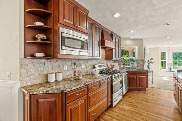 This spacious 5-bedroom home has it all. Level entry first floor has 2 bedrooms and two baths with a separate entrance that makes it perfect for live-in guests, office, or? The remaining first floor includes a large great room, formal dining room, beautifully updated kitchen, breakfast nook, walk-in pantry and large laundry room. For extra coziness, primary bedroom and family room both have wood-burning fireplaces. Upstairs are 3 bedrooms 2 baths plus an office/nursery; Sunny deck, beautifully landscaped yard, and mature trees invite outdoor entertaining as well. Great commute location, close to Scotts Valley schools and shopping. Minutes to Santa Cruz beaches, hiking, and redwoods.