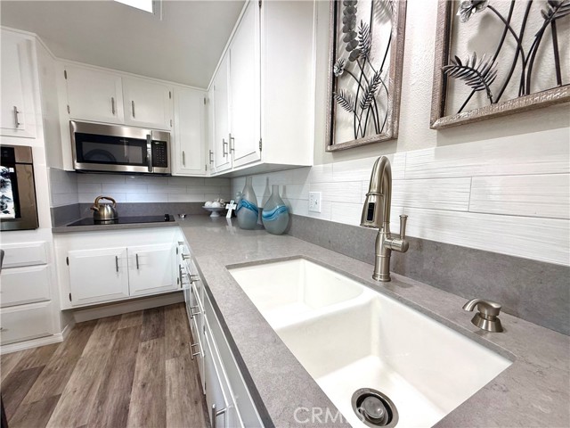 Elegant One-Bedroom Retreat in Mutual 9 Step into a bright, beautifully upgraded one-bedroom, one-bath home in sought-after Mutual 9, perfectly located with drive-up convenience and parking right in front. This expanded unit combines classic Leisure World charm with modern style, featuring new luxury vinyl plank flooring, fresh neutral paint, and a tiled front porch for outdoor enjoyment. Inside, you’ll find a light-filled living space accented by a large electric skylight with a rain sensor, two additional solar tubes, and new energy-efficient windows. Mini-split heat and A/C units in both the living room and bedroom ensure year-round comfort. The upgraded kitchen features all new stainless appliances including a wall oven, cooktop, and refrigerator, enhanced by a subway tile backsplash, quartz countertops, new fixtures, and a large skylight that fills the space with natural light. The bathroom is equally refined, offering a quartz vanity, new fixtures, a new toilet, and a solar tube for soft daylight. A stackable washer and dryer are conveniently tucked into the hallway closet. Enjoy upgraded blinds inside and on the porch, a secure storage closet perfect for a bike or tools, and a welcoming screened entry door that lets the ocean breeze flow through. This home offers the perfect balance of comfort, sophistication, and practicality—ideal for those seeking a turnkey home in one of Leisure World’s most desirable Mutuals. Mutual  (Carport 110, Space 3) SENIOR COMMUNITY-OFFERS THE FOLLOWING AMENITIES: 9 Hole Golf Course, Swimming Pool, Jacuzzi, Gym, Table Tennis, Shuffle Board, Billiards, Pickle Ball, and Bocce Ball courts. Amphitheater, 6 Clubhouses featuring: Art Room, Sewing, Crafts, Wood Shops, Lapidary, Pool Tables, Over 200 Clubs, LWSB is a Security-Guard-Gated Community. Also Library, Friends of Library Bookstore, Credit Union, Health Care Center, Pharmacy and Post Office.