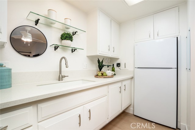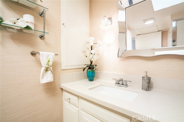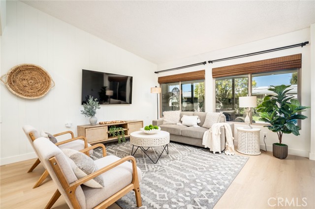 RARE PRIME LOCATION + OUTSTANDING CONDITION!!! Not all homes in Leisure World are the same. We all know that Seal Beach is paradise and Leisure World is the premiere 55+ Adult Community there. But how often will you have the opportunity to find a quiet and ultra-clean property in a great location like this? This home has been tastefully expanded and is absolutely situated in the very best location adjacent to the 9-hole golf course and just steps from all major amenities like the Main Town Square w/Administration Services & Shops, Gym/Pool/Jacuzzi complex, Performance Amphitheatre + so much more. While many of the homes for sale here will receive never-ending street noise, this home is perfectly situated in the interior of the development with a peaceful greenbelt surrounded by some of the highest caliber homes and neighbors you can find. The Seller has just installed brand new luxury vinyl plank flooring and baseboards throughout. The home has recently been repainted and quartz countertops have been added in the kitchen and bathroom. There are 2 remote controlled heat/air conditioning mini-split systems (living room & primary bedroom) which are so much better than the old radiant heat system typically found here. Additional upgrades include dual pane windows & sliding glass door leading to the private front porch w/flagstone hardscape, 3 skylights, ceiling fan, and sprinklers for your front garden area. The 24 guard gated community has a 9-hole 3-par golf course, swimming facilities w/heated pool & spa, 5 clubhouses, community gardens, over 200 organized activities like specialty arts and crafts rooms, fitness and exercise rooms, pickleball & sports courts, free daily bus service, an on-site health care center, and a fully staffed 24-hour security service. This home is located in Mutual 14, Carport 149, Space 18.