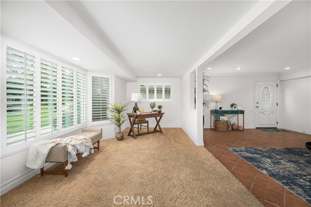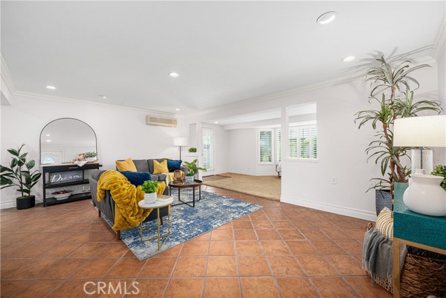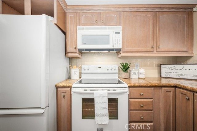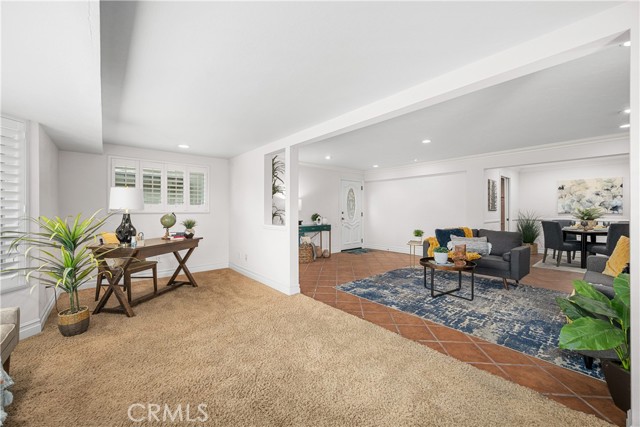 Welcome to this rare, fully expanded 2-bedroom, 2-bath downstairs unit with an added patio that opens directly onto the greenbelt! Enjoy complete privacy with dual-pane windows throughout and an AC heat pump for year-round comfort. Upon entry, you're greeted by elegant tile flooring, smooth ceilings, and recessed lighting that enhances the open, airy feel. The spacious living room has been thoughtfully expanded to include a versatile bonus area—ideal for a home office, hobby room, or reading nook—featuring a large bay window and direct access to the outdoor patio. The updated kitchen seamlessly connects to the dining area via a convenient pocket door and showcases granite countertops, custom wood cabinetry, and stylish hardware. It comes fully equipped with full-size appliances including a range/oven, dishwasher, microwave, and refrigerator. The guest bathroom offers a refreshed design with a new vanity, stone countertop, and a walk-in stall shower. At the end of the hall, the generously sized primary suite includes a full-size spa tub, custom vanity, in-unit washer and dryer, and excellent closet space. Boasting over 1,200 sq ft of beautifully maintained living space, this home is a must-see. Don’t miss your chance to own this exceptional property—it won’t last long! (CARPORT 5, SPACE 28).