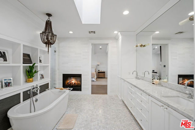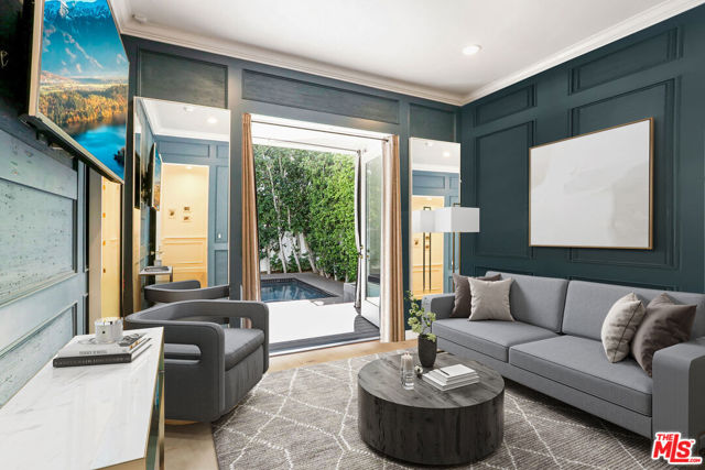 Nestled on a serene, tree-lined street in the highly sought-after Fashion Square, this stunning Cape Cod residence offers 4 bedrooms and 4 bathrooms of pure elegance and comfort. Step inside to the open-concept design that seamlessly integrates natural light and custom details throughout. The formal living room, anchored by a charming fireplace, flows effortlessly into the dining room. From here, enter the heart of the home: a custom-designed chef's kitchen featuring high-end Miele appliances, an oversized center island with bar seating, custom built-in bench and a bi-folding serving window that overlooks the backyard & covered patio. Across from the kitchen lies the family room that displays custom built-ins, storage, and light fixtures. This inviting space is perfect for entertaining, with accordion doors that open to a beautifully landscaped backyard with incredibly tall privacy hedges that are such a rarity! No downstairs would be complete without a versatile bedroom (or gym / office) with French doors to the backyard. Rounding out this floor is a conveniently located bathroom, and direct access to the mudroom and garage. Ascend the staircase to the glamorous primary suite, which boasts a huge private balcony, a two-sided fireplace, and a spa-like bathroom complete with a soaking tub, a separate shower, and an expansive custom walk-in closet. Additionally, you'll find two more generously sized bedrooms, each with its own bath en-suite, and a well-appointed laundry room. The backyard is fit to host many occasions, featuring a sparkling pool with a baja shelf, a relaxing spa, a covered patio with trex decking, a built-in barbecue with storage and mini fridge, and a lush grassy area, providing ample space for relaxation and gatherings. Situated just moments from the Fashion Square, the Rec Center, Ventura Blvd and with easy access to the 101 & 405 and Westside, it doesn't get better than this! Come experience the perfect blend of luxury and convenience in one of Sherman Oaks' most desirable locations!