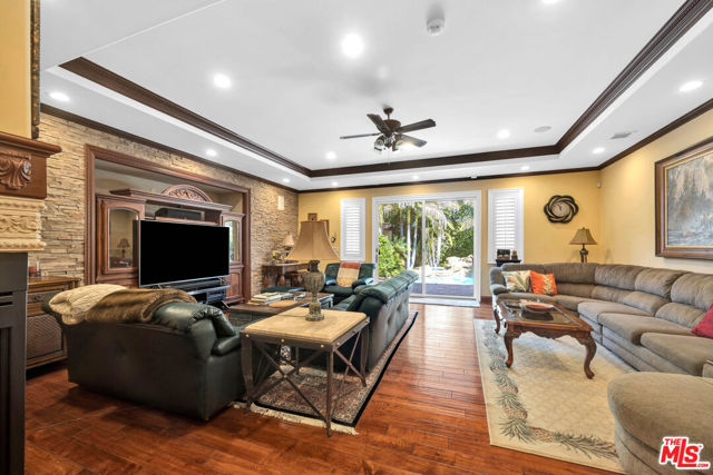 MOVE-IN-READY CONVENIENCE; FURNITURE IS ALSO NEGOTIABLE. Discover unparalleled luxury in this stunning, privately-gated Mediterranean masterpiece, nestled in the prestigious Sutton Estates neighborhood of the Sherman Oaks flats. Set back 70 feet from the street, this exceptional compound offers 9,050 square feet of refined living space, blending grand elegance with effortless comfort. Entertain with ease in the expansive chef's kitchen, featuring dual dishwashers and seamless flow into the family room and resort-style backyard. Indulge in cinematic experiences within the gorgeous, dedicated theater/screening room, complete with a wet bar. The main residence boasts 5 luxurious bedrooms and an executive office, ensuring ample space for family and work. A detached guest house provides a private retreat, featuring a full bedroom, living area, kitchen, and walk-in closet. Beyond, is a "Casita" studio offering a versatile space for a gym, office, maids quarters or creative studio, complete with a 3/4 bath, laundry, and walk-in closet. The sprawling, over half-acre grounds are a haven of tranquility, showcasing meticulously landscaped gardens and mature trees. The resort-style backyard is an entertainer's dream, featuring an outdoor kitchen, BBQ, dual gas and wood-burning fireplace with a beamed trellis ceiling. A motor court accommodates 10+ vehicles, alongside a 4-car garage. This landmark property presents a rare opportunity to own a slice of Sherman Oaks paradise. Ideal for extended families, car enthusiasts, or those seeking an extraordinary private retreat, this compound offers a lifestyle of unparalleled luxury and convenience. Schedule your private showing today and experience the grandeur firsthand.