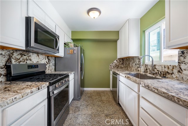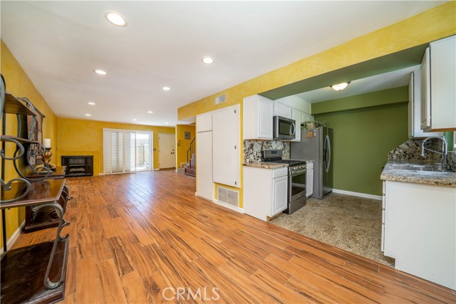 WOW! NOW REDUCED! California Living at its finest in this updated townhouse, just south of the famed Ventura Blvd with all its shopping and fine restaurants! The gated security entrance leads you to this cozy 8 unit building, The double door entry opens to light and airy floor plan with laundry IN THE UNIT! The living room and dining area boasts easy to care for Italian woodgrain tile and newer recessed lighting; it's warmed by the fireplace and feeds out to the private patio via the sliding glass door and its plantation shutters. The updated kitchen with newer appliances and fixtures, and ample granite counters will make any chef happy! The downstairs powder room has a new toilet and new fixtures. Primary Bedroom #1 contains a sizable walk-in closet. The larger Primary Bedroom #2 also has more than ample closet space. The main bathroom has been updated with an oversized tub and chic fixtures. In the rear of the complex lies a unique paved backyard perfect for BBQ's or social gatherings. AND, this complex has a VERY LOW HOA!