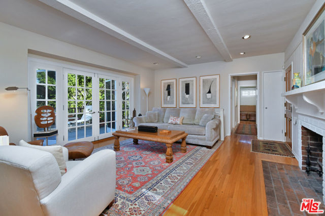 Character-filled home with classic details and beautiful views, located south of Ventura Blvd. in the desirable Sherman Oaks foothills. This charming property features natural oak hardwood floors, wood-beamed ceilings, and French doors that open to an expansive deck surrounded by greenery. The inviting living room includes a wood-burning fireplace with a mantle and city views. A formal dining room adjoins the kitchen, which offers a breakfast bar, pantry, and a service porch with a guest bath. Upstairs are two bedrooms, while the primary suite is located downstairs and features a spacious remodeled bathroom with a large glass shower, vanity, and walk-in closet. A French door from the suite opens to the garden and brick patio. The beautifully landscaped yard includes a large grassy area and mature plantings, providing a peaceful outdoor retreat. Set back from the street for privacy, this special home is being offered for the first time in 37 years. Recent upgrades include a new roof, copper plumbing, and newer central air and heat. A must see to appreciate!