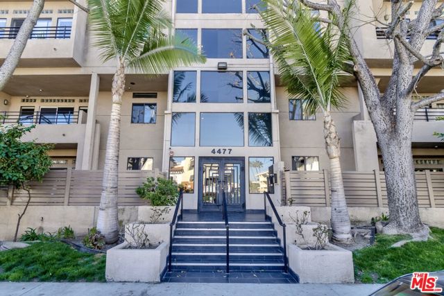 This large one bedroom, 1.5 bath condo has spacious rooms and high ceilings. The large, private patio visually increases the size of the unit with an indoor/outdoor feel. Custom ebony bamboo flooring covers the entry, kitchen, living and dining areas. The kitchen and bathrooms were updated with new fixtures, cabinetry, countertops, and glass tile. The wood framed, sliding mirror closet doors add an elegant touch to the space. The kitchen comes with stainless steel appliances including a refrigerator, dishwasher, oven with stove top, and a built-in microwave. Large 250 sq ft private patio. There is an in-unit stacked washer/dryer. The AC unit was replaced in 2022. The building has a new roof completed in 2024 and new fencing around the first-floor patios completed in 2023.There are 2 tandem parking spaces for the unit, plus guest parking and EV charging stations in the gated garage. Pool and Spa. Subject to cancellation of current escrow
