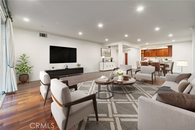 END UNIT Welcome to this stunning 3-bedroom, 3-bath condo in the heart of Sherman Oaks, offering over 1,800 sq. ft. of luxurious living space. This rare corner END unit features a spacious open floor plan with beautiful hardwood floors throughout and abundant natural light flowing in from two private patios — one off the living area and another from the oversized primary suite. The chef’s kitchen is equipped with stainless steel appliances, granite countertops, a breakfast bar, and an adjacent dining area perfect for entertaining. The primary suite is truly a retreat, featuring a custom walk-in closet with built-ins and a spa-like bathroom complete with a soaking tub, separate shower, and space for a double vanity. Additional highlights include in-unit laundry, secured underground parking with private storage, ample guest parking, and low HOA dues in a well-maintained elevator building. Ideally located near Ventura Blvd’s shops, restaurants, Gelson’s, and Whole Foods, WITHIN MINUTES TO 101 IDEAL LOCATION this home perfectly blends convenience, style, and comfort.