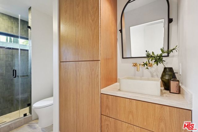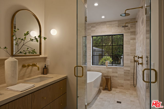 A Bespoke Retreat in Sherman Oaks. Welcome to this impeccably renovated single-story masterpiece in the heart of Studio City, just moments from the newly revitalized Sportsmen's Lodge and some of L.A.'s finest dining, shopping, and entertainment. Situated on a flat, tree-lined street with sidewalks and curated landscaping, this 4-bedroom, 3.5-bathroom home exemplifies modern elegance and sustainable living at its finest.Step inside to a sun-drenched, open-concept floor plan thoughtfully designed with premium, eco-conscious materials and sophisticated finishes. From the moment you enter, you're greeted by custom Emtek door handles, EMTouch keypad entry, and German-engineered locks that blend luxury with state-of-the-art security.The interiors showcase white oak wood paneling, custom interior doors, and Italian VOC-free, gold-certified wood flooring, sustainably sourced and designed for both beauty and wellness. All plywood is ethically sourced through a fully transparent supply chain and certified by SFI, PEFC, and FSC ensuring zero VOCs and no off-gassing for a cleaner, healthier indoor environment. Some walls are finished in Portola plaster and all with no-VOC paint, offering texture and tranquility throughout.In the kitchen, bespoke craftsmanship meets cutting-edge performance. Thermador appliances are paired with Kast sinks handmade in the UK using locally sourced stone and natural pigments and elegant Waterworks faucets. The space is illuminated by Allied Maker, Paul Matter, and Volker Haug lighting. Framed by energy-efficient Fleetwood and Marvin doors, allowing seamless indoor-outdoor living.The spa-inspired primary suite is a sanctuary of calm, complete with a wet room shower, a freestanding soaking tub, and luxurious Phylrich fixtures. Bathrooms throughout the home are dressed in eco-friendly, lead-free stone and tile, emphasizing both style and sustainability.Outdoors, the resort-style backyard features a new saltwater pool and jacuzzi powered by high-efficiency systems. A custom wood garage door and securely gated front yard offer privacy, curb appeal, and peace of mind.This home is built with health, safety, and sustainability at its core. The insulation is Greenguard Gold certified, formaldehyde-free, made from recycled content, and energy efficient. All windows and doors are fire-resistant, secure, and designed for exceptional thermal performance. Exterior materials are fire-resistant, environmentally conscious, and built to last.Every detail has been curated for those who seek the intersection of modern design, wellness, and responsible luxury. Don't miss the opportunity to own one of Studio City's most thoughtfully executed residences.