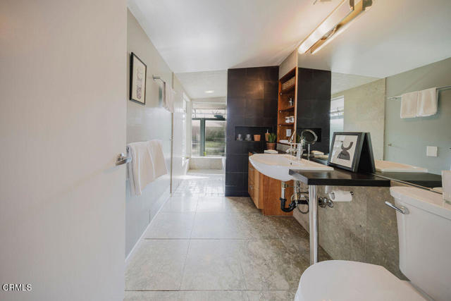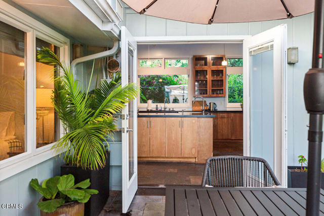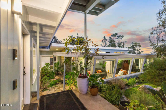 Nestled in the picturesque Sierra Madre Foothills, 342 Camillo Road--affectionately known as 'The Stone House'--traces its origins to the early 1900s, when Italian stonemasons quarried massive granite boulders from the property to construct the building. Originally serving as a three-bay garage for its first owner's Stanley Steamer automobiles, the structure was purchased in the 1940s by a couple who transformed it over the next decade into a mid-century modern residence. Today, the home stands as a timeless testament to that enduring aesthetic. Offering breathtaking mountain views, an open-concept layout, and expansive glass windows that open in all directions to private patios and gardens, this architectural gem is a rare find. Vaulted ceilings create a seamless flow between the living room, dining area, and kitchen--ideal for both relaxing and entertaining. The living room features a dramatic floor-to-ceiling slate fireplace, perfect for cozy evenings, along with custom built-ins. The spacious kitchen includes a second fireplace, ample storage, and a large island. The primary suite provides a peaceful retreat with serene backyard views and a spacious bathroom featuring a zero-threshold shower. Two additional bedrooms and a hall bath offer flexible space for family, guests, or a home office. A sunroom bathed in natural light--currently serving as a den--adds versatility and warmth to the home's living space. Above it, three windows set beneath wooden beams mark the former garage bays, offering a subtle nod to the home's storied past. Outside, a private oasis awaits. A built-in BBQ, dining area, and fire pit create the perfect setting to enjoy panoramic views of the San Gabriel Mountains. Additional features include updated systems, drought-tolerant landscaping with mature trees and plantings, accessible walkways, solar panels, a Control4 smart home system, Lutron shades, electric car charger, separate laundry room, powder room, keyless entry and intercom, new fencing with a solar-powered gate, and a carport with covered access to the front door. Centrally located near shopping, dining, and major freeways, 342 Camillo Road offers a rare opportunity to own a timeless piece of Southern California's architectural heritage while enjoying a lifestyle that harmoniously blends nature and city living in beautiful Sierra Madre.